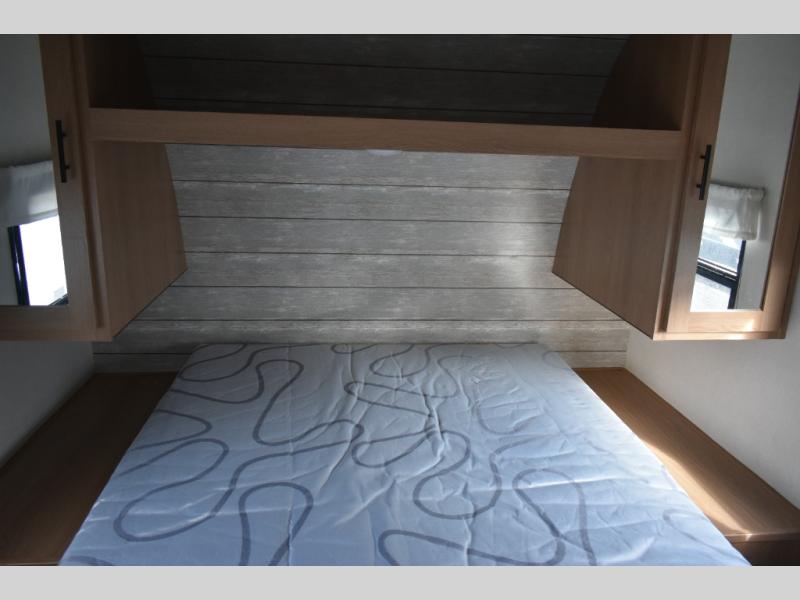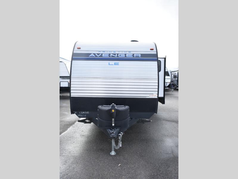 Enjoy each camping adventure with this Avenger LE model in tow! The rear kitchen is conveniently located near the entry door so packing up groceries and stocking the refrigerator is a breeze. You can easily cook up meals and snacks using the three burner cooktop and overhead microwave oven, and a nearby pantry will easily house all of your dry goods and snacks. A single slide sofa and booth dinette offers ample seating when inside, plus adds an open floorplan to move about. A private front bedroom with space saving sliding door provides cross ventilation with opposing windows, plus dual bedside wardrobes and overhead cabinets for your things. And, a full bath offers at-home conveniences with your own shower, toilet and sink, plus medicine cabinet. No campground facilities in the middle of the night with this unit!