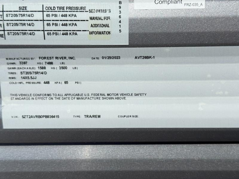 Used 2023 Prime Time RV Avenger 26BK Travel Trailer