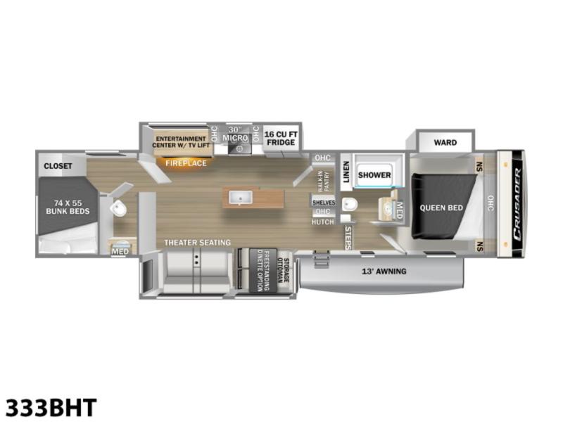 Prime Time Crusader fifth wheel 333BHT highlights:
