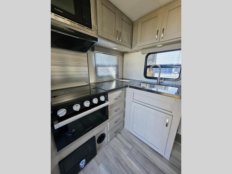 With any Tracer travel trailer by Prime Time RV, you will enjoy a lightweight, easy to tow RV for all your outdoor adventures. Each one is constructed with Eternabond construction that includes laminated aluminum framed walls, floor, and roof for ultra durability. You will be able to extend your camping season thanks to the heated and enclosed underbelly, the 30K BTU furnace, and the insulated and foam block fiberglass insulation. The Tracer travel trailers are packed with exterior conveniences to make each trip hassle-free, like the power tongue jack and electric stabilizer jacks, the Doggy D-ring pet securement, the universal docking center, and so much more. Head inside to find at-home comforts throughout, including solid wood core cabinetry, LED lighting with motion sensor lights in key locations, and a brushed nickel "J" spout kitchen faucet to name a few.