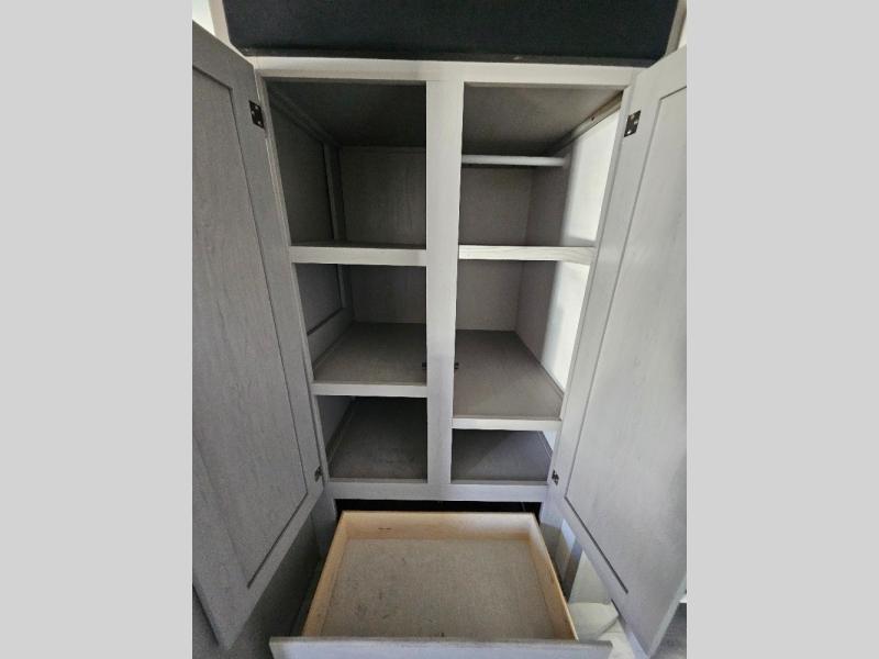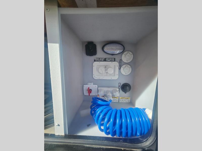 The cook in the family will love this trailer with its rear kitchen which includes all the appliances and an undermount stainless steel sink, plus windows for views. The slide out in the main living area provides more elbow room and includes a booth dinette with under bench storage, a pantry for dry goods and a wardrobe for your guests. The full bathroom offers a radius shower and vanity, and the front bedroom gives you privacy, a queen bed with wardrobes, and the second entry/exit door for convenience.