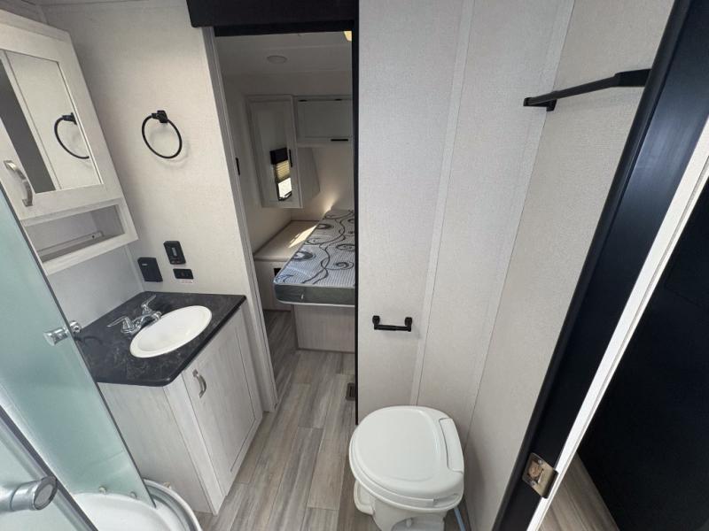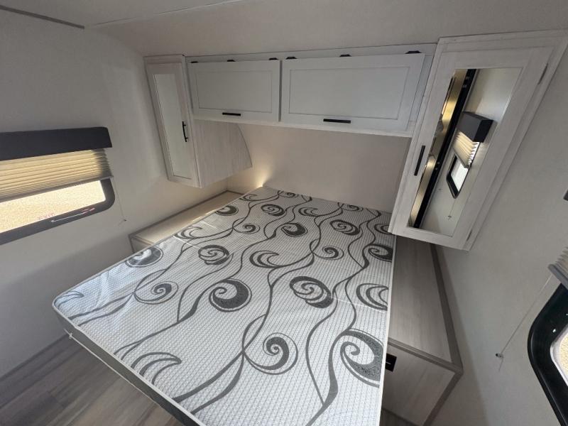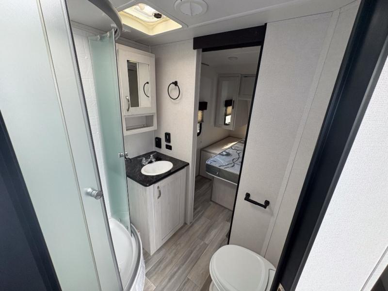 With any Tracer travel trailer by Prime Time RV, you will enjoy a lightweight, easy to tow RV for all your outdoor adventures. Each one is constructed with Eternabond construction that includes laminated aluminum framed walls, floor, and roof for ultra durability. You will be able to extend your camping season thanks to the heated and enclosed underbelly, the 30K BTU furnace, and the insulated and foam block fiberglass insulation. The Tracer travel trailers are packed with exterior conveniences to make each trip hassle-free, like the power tongue jack and electric stabilizer jacks, the Doggy D-ring pet securement, the universal docking center, and so much more. Head inside to find at-home comforts throughout, including solid wood core cabinetry, LED lighting with motion sensor lights in key locations, and a brushed nickel "J" spout kitchen faucet to name a few.