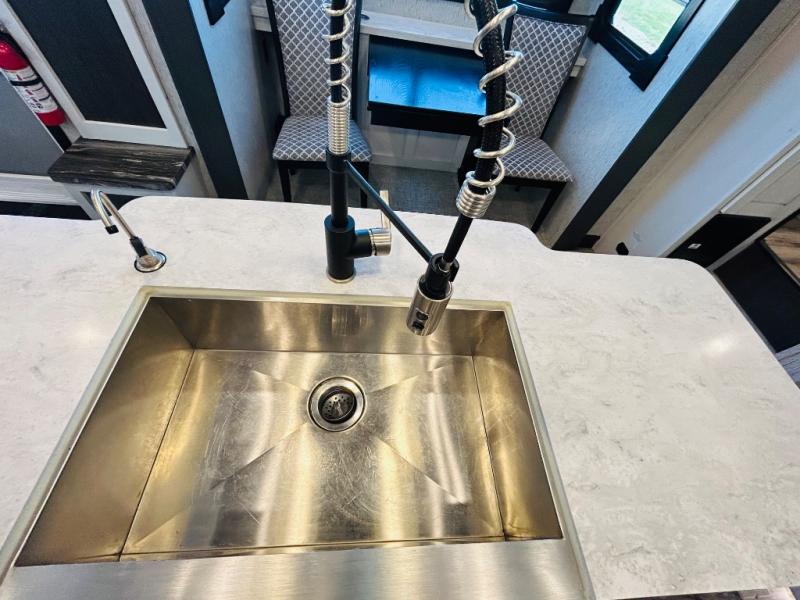 You are going to wish you found the Redwood fifth wheels sooner! With all of the residential comfort and modern luxury, you will be impressed. The Williamsburg Furniture Collection includes two premium dinette chairs, a buffet-style adjustable dinette with leaf extension, a residential-style sofa, and powered theater seating. The luxury further extends to the bedroom where you will find a gel-foam king bed with tilt and C-PAP shelves on both sides of the bed. The straight roof line gives a luxury profile, and there are preparations for a wireless backup camera as well as solar power. The seamless residential insulated heat ducts will efficiently heat your unit, and there is an exterior radio in the fully finished and heated pass-through with slat board storage.
