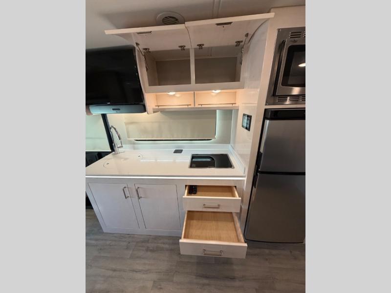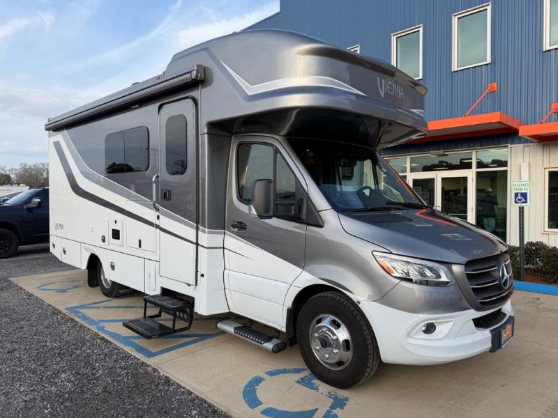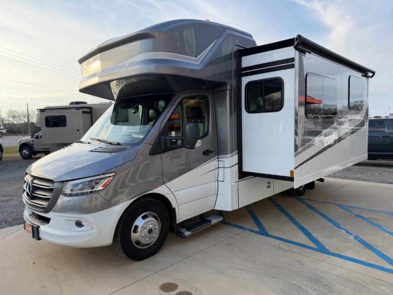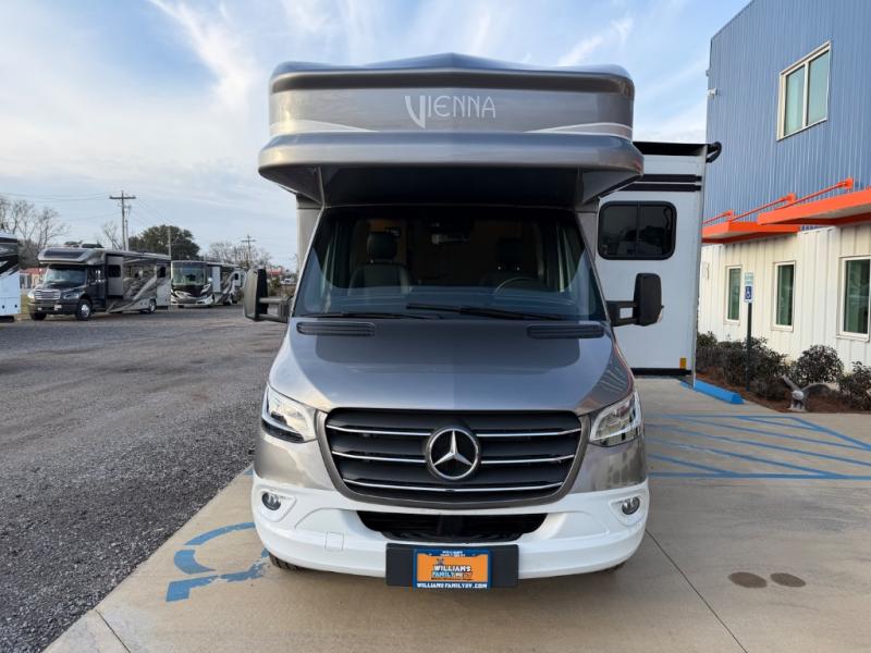 Luxury is in the details of each one of these Renegade Vienna Class C diesel motorhomes! They are built on a Mercedes-Benz Sprinter chassis, and include a four point hydraulic leveling system with app control, a 2000w true sine wave hybrid inverter, a 3.6KW LP generator with auto gen start, and Winegard Connect 2.0. You will appreciate the Truma™ Comfort Plus tankless water heater when showering, the accent lighting at the galley countertop for style, and the USB charging in the living area, bedroom and kitchen to keep your electronics ready. The Maple hardwood cabinetry completes the luxurious décor throughout the inside. Make your selection today!