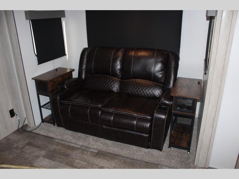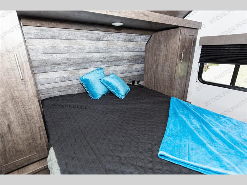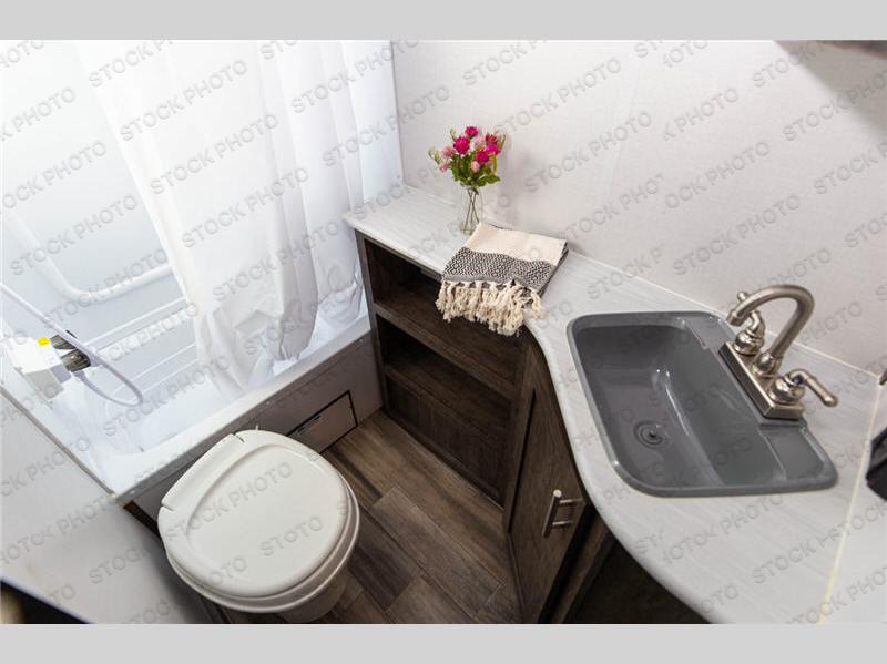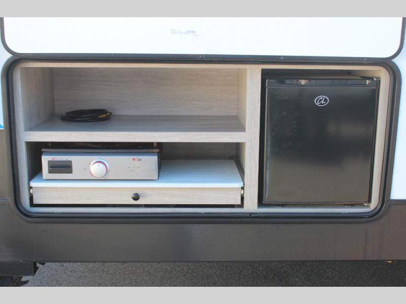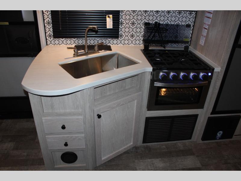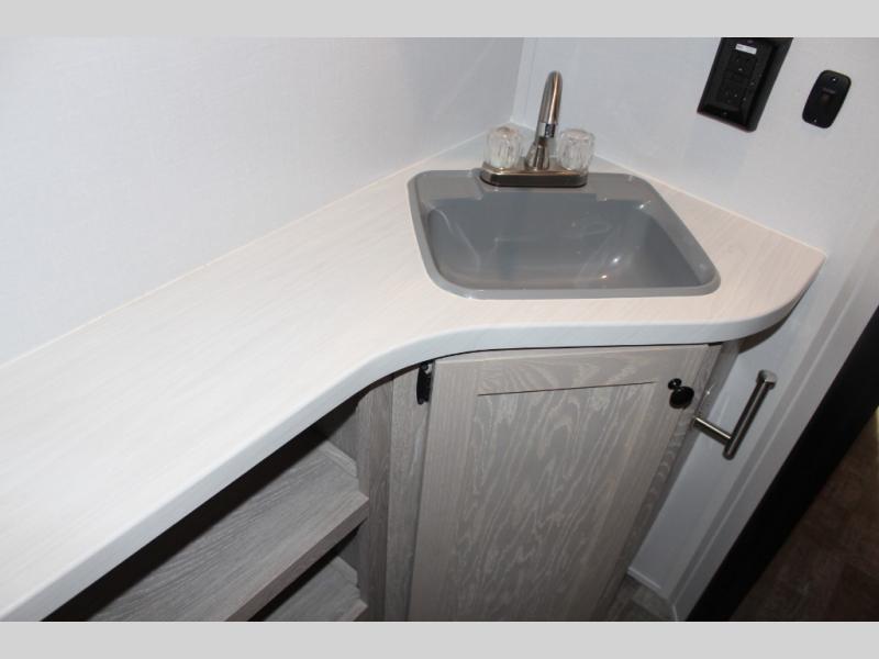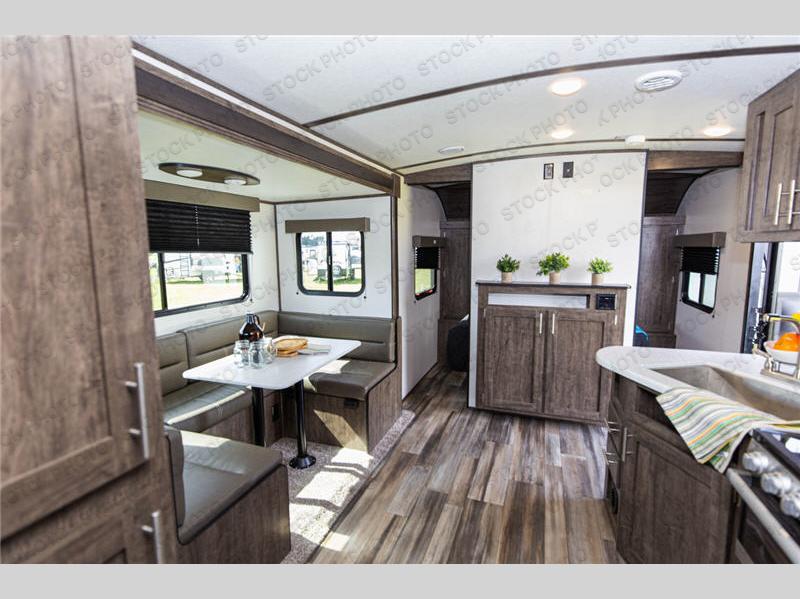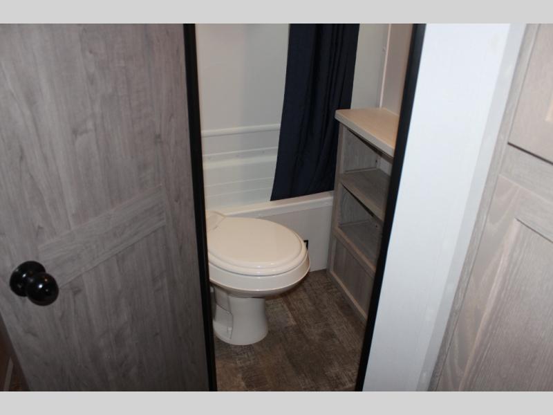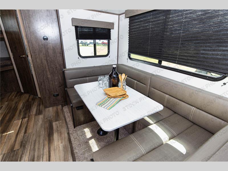 One look at this family-friendly trailer and you'll be hooked. There are double-size bunks for the kids or your guests, and an RV queen bed in the front private bedroom. Additional guests can sleep on the U-shaped dinette slide when it's not being used for dining or game night. There is a full bath on board for your convenience, and an interior kitchen the chef is sure to love. But they may love the outdoor kitchen even more!