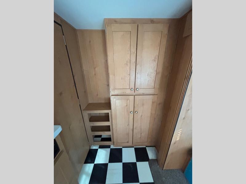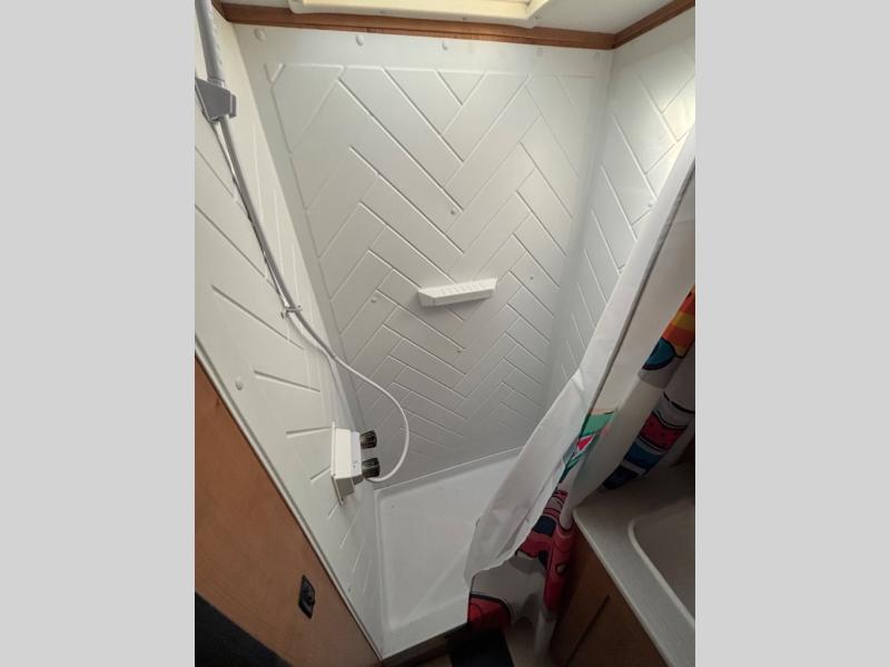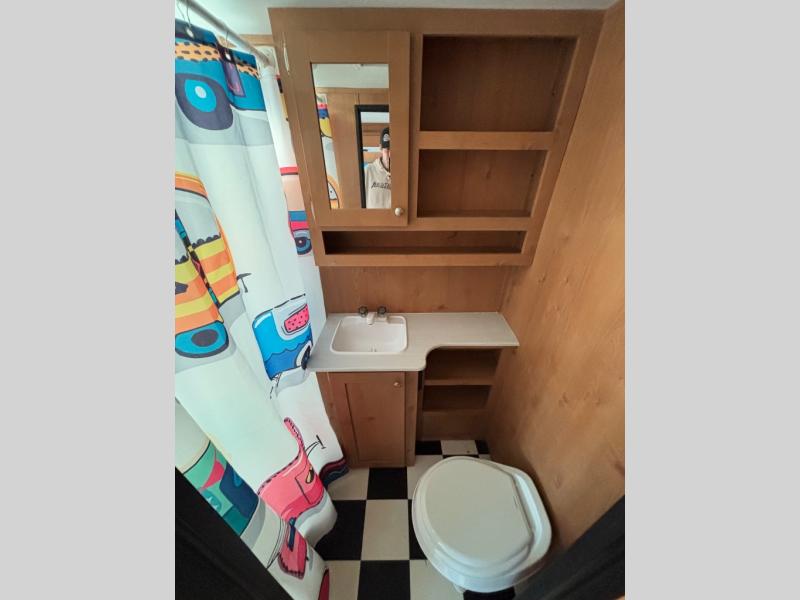 Discover new places with this travel trailer! It features a front 60" x 76" queen bed to lay your head on each night with a shelf and a shirt closet for your clothes. You can prepare your best home cooked meals with the three burner cooktop and the refrigerator then eat them at the booth dinette. If you stuffed your belly too full then relax on the sofa and watch a movie with the entertainment center if you've brought a TV until you're ready to get back outdoors. Rinse the sand out of your hair with the shower in the rear corner bathroom!