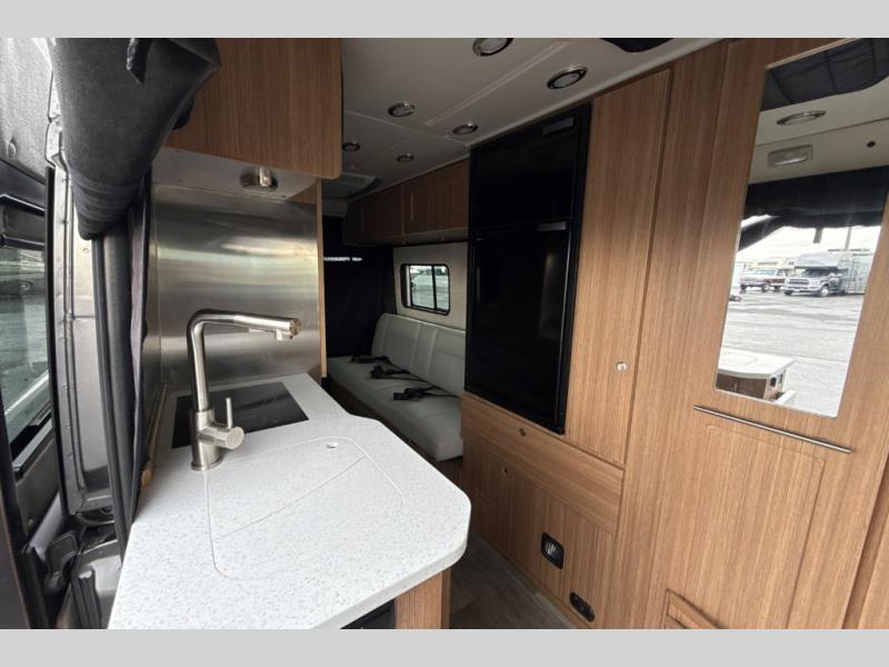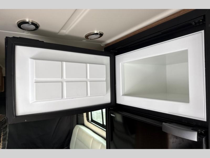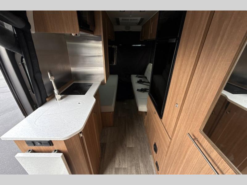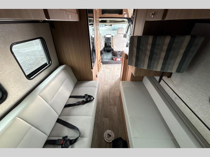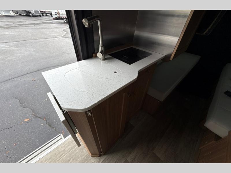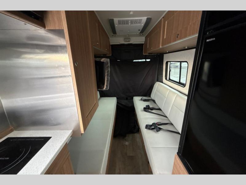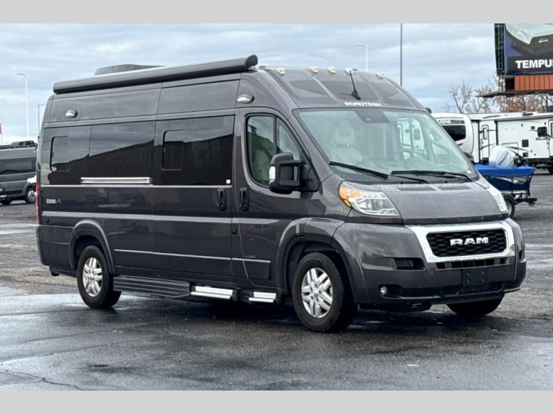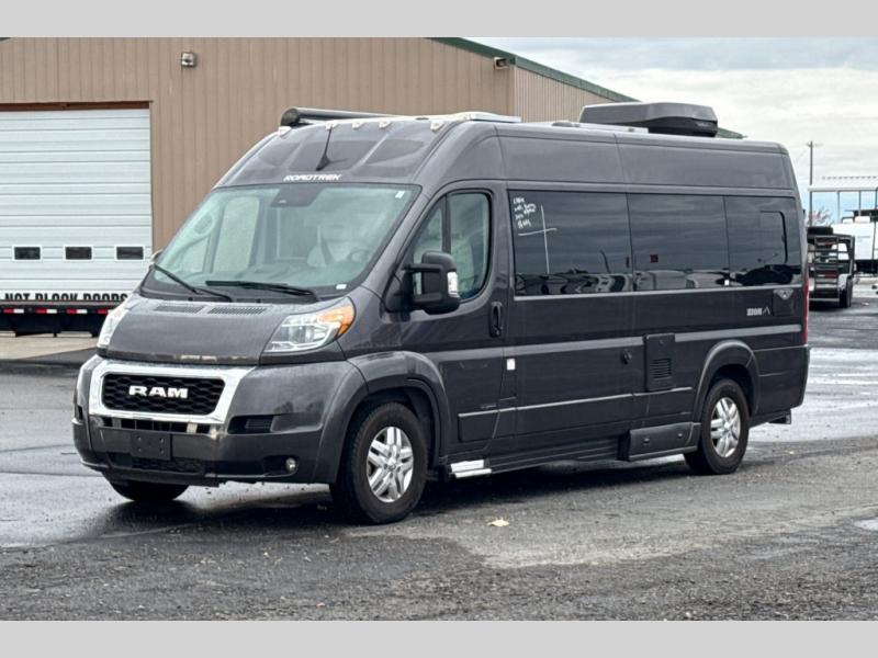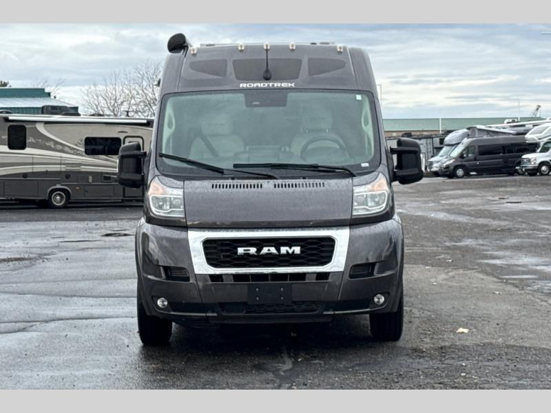 The Roadtrek Class B gas motorhomes are built upon the stylish Ram ProMaster 3500 chassis with a 3.6L V6 gas engine to power your trips near and far. The Uconnect 5 HD radio with Apple Car Play and Android Auto will make the drive just as sweet as the destination. Each model includes a 12V refrigerator, a two-burner recessed propane stove with a flush cover and built-in igniter, and ample storage space for all your belongings. The Firefly coach control system monitors the water, propane, battery charge levels, battery disconnect, and generator hour meter for your convenience. There are even solar panels to go off the grid, an outdoor shower to rinse the dirt off your feet before entering inside, and a retractable awning to protect you rain or shine. Come find your favorite one today!