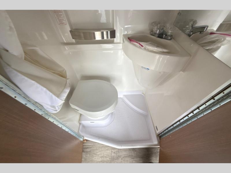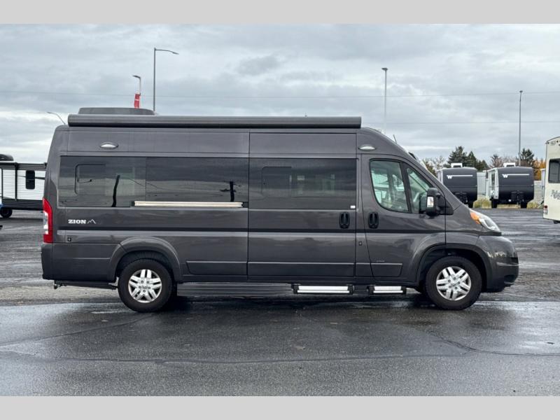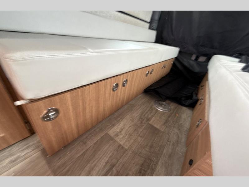 Whether you need more space for your bicycles, gear, or luggage, you will love the open-concept layout of the Zion coach. Each morning you can prepare breakfast on the two-burner propane stove, or use the convenient microwave oven. Head out to find a trail or two, and the wet bath will be waiting for you when you return. The countertop extension with a charging station will provide a place to download your pictures from your hike, and there is a slide-out pantry to grab a snack to hold you over until dinner. The side-facing rear power sofas easily convert to twin beds or a king-size bed for your comfort.