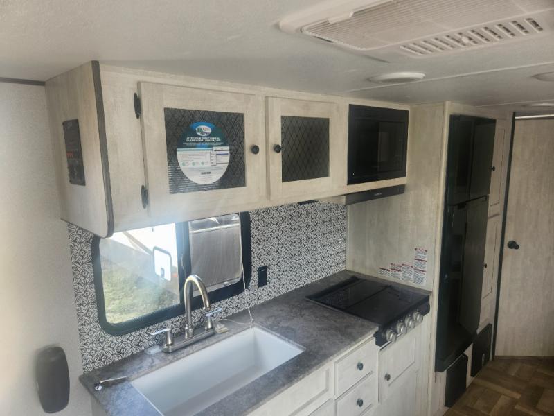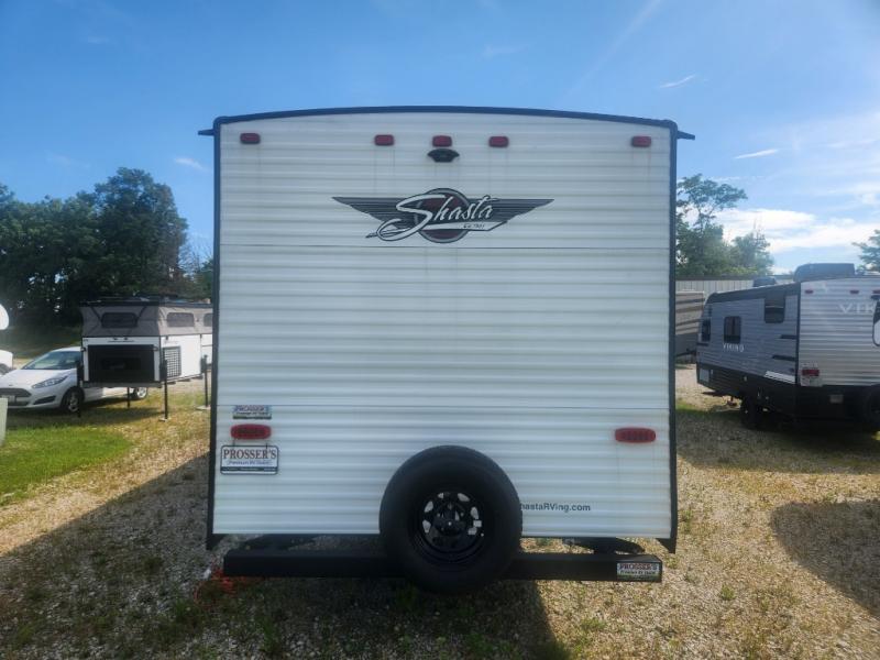 In any Shasta i-5 Edition travel trailer, you will find quality craftsmanship along with an affordable price tag. These units each features four stabilizer jacks to make setting up easier. The Base Camp Package provides each unit with black tank flush, a monitor panel for quick access to the functions of your unit, a 13.5K A/C unit, a 20# LP bottle, and solar and backup camera prep, plus more. You will appreciate the seamless countertops, a residential 10 cu. ft. refrigerator and microwave oven for food storage and cooking, plus pass-through storage and patio awning for your outdoor enjoyment!