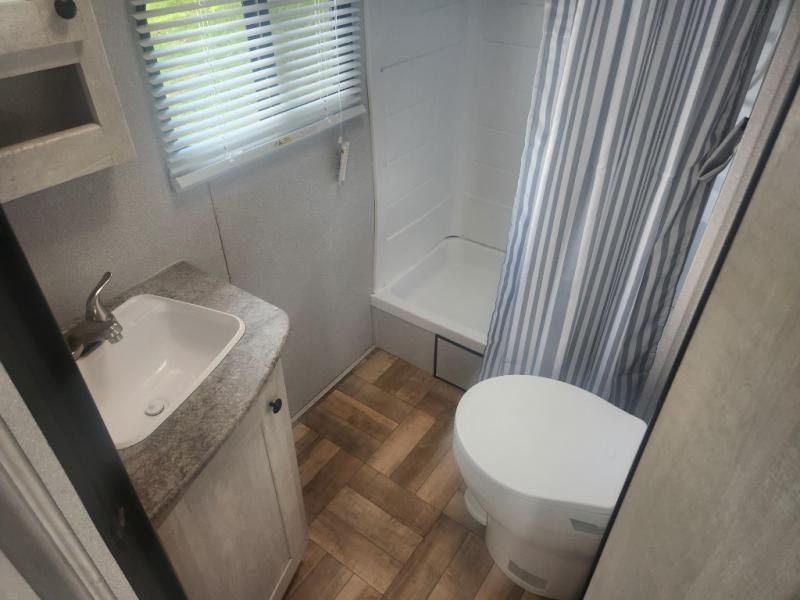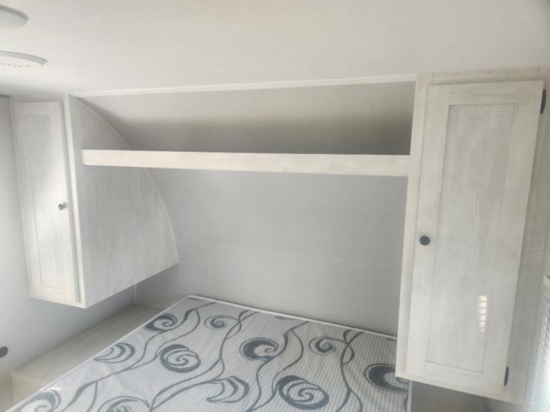 Enjoy family time camping in this Shasta i-5 Edition trailer featuring a single slide in the main living area. This unit is perfect for a growing family or someone that likes to camp with friends. The combined living and kitchen area is spacious when the slide is opened up. Here you will find seating for meals, games, and more with a booth dinette and sofa which can be converted into added sleeping space if needed. There are double bed bunks in the rear roadside corner and a full bath with shower, vanity, and toilet in the opposite rear corner. There is also a medicine cabinet for your personal items like razors and toothbrushes. The kitchen is fully equipped for your camping trips featuring a three burner cooktop with glass cover, an overhead microwave oven, a large sink, plenty of overhead cabinet space as well as storage cabinets and drawers below. You will also love the pantry cupboard for all of your canned goods and snacks. In the front of this unit, a semi-private bedroom with curtains on either side as this has an entry on both sides of the room. The RV queen 60" x 74" bed lifts up to provide added storage for blankets and larger items below, plus you will have hanging wardrobes and nightstands on either side of the bed as well. Outside, enjoy the large pass-through storage for all of your outdoor camping gear and more.