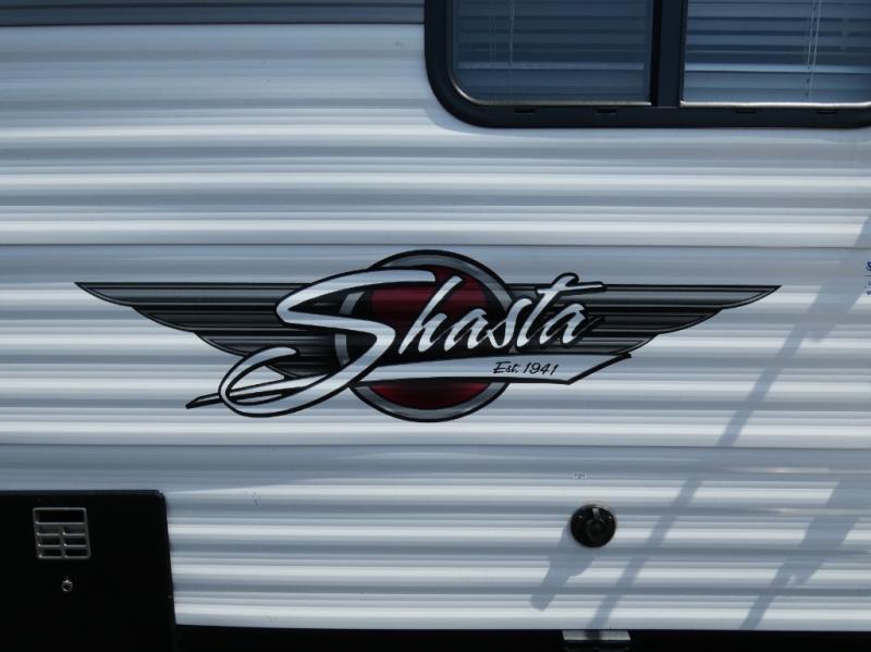 With each Shasta travel trailer by Shasta RVs, premium construction products are used such as radius wood rafters, wall studs on 16” centers, cambered steel i-beam frame, Congoleum flooring, and seamless countertops. Also included is an aerodynamic radius front profile, a front colored rock guard to protect against road debris, a straight axle with electric brakes, molded rain gutter with extra long spouts, and a power tongue jack for easy setup. The interior offers decorative cabinet pulls, USB charging stations, an under-mount kitchen sink with sink cover, and more providing value and convenience. Rest easy when you purchase a lightweight Shasta that is built to last!