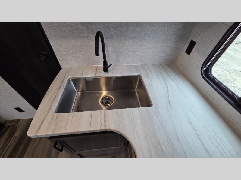 The Autumn Ridge travel trailers by Starcraft are easy to tow and easy to love! Each one is constructed with a durable Magnum Roof system, black front diamond plate protection, and fiberglass insulation so you can camp well into the colder months. The kid and pet friendly residential vinyl flooring will be easy to keep clean, and you'll love the hardwood cabinet doors, pleated blackout night shades, and pressed membrane kitchen countertops. An AM/FM/Bluetooth radio with indoor/outdoor zoned speakers means you can listen to your favorite tunes as you visit with friends and family, plus there is a power awning with LED lights for an inviting outdoor living space.