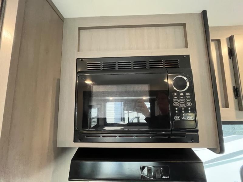 With any Starcraft Super Lite travel trailer, the solid and lightweight construction includes a fully walkable roof with a PVC roofing membrane that easily reflects solar heat and UV rays and TuffShell vacuum bonded laminated construction, reinforced with heavy-duty fiberglass and welded aluminum frames. There is also a molded front cap with LED lighting to protect against elements, a power tongue jack for easy towing, plus a power awning with LED lighting. The interior is spacious with an 81" living room ceiling height, hardwood cabinet doors, and flush floor slides with residential vinyl flooring and pressed membrane countertops for easy cleanup. Don't wait for your next adventure, take a Super Lite with you today!