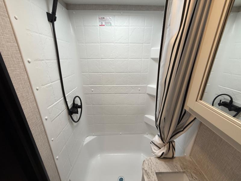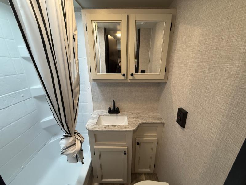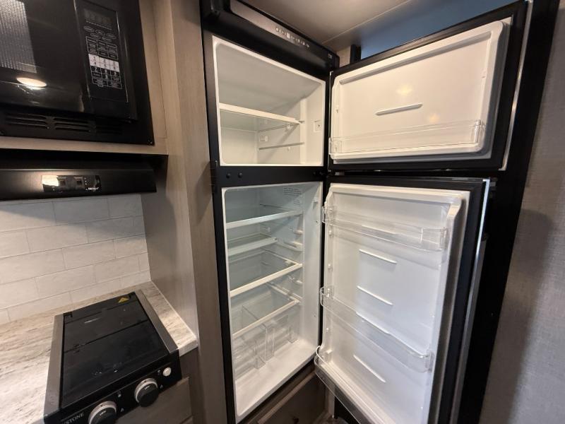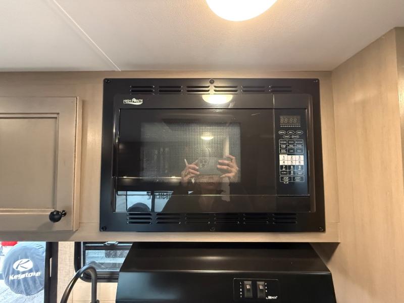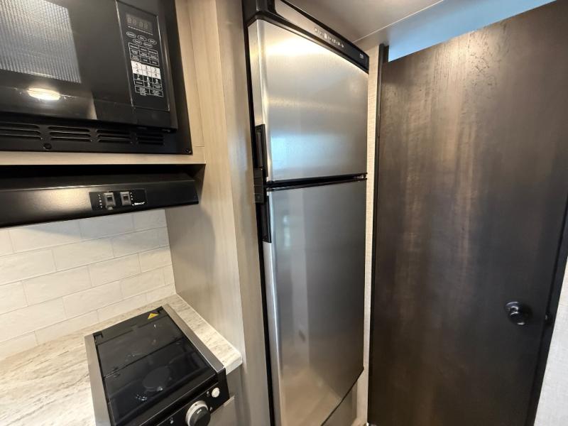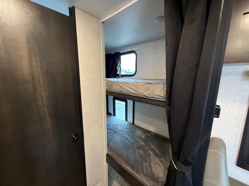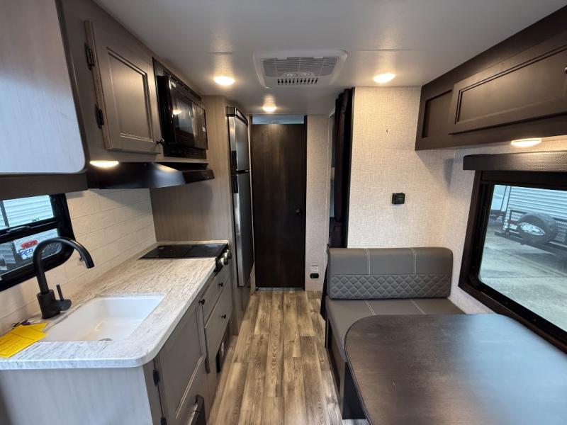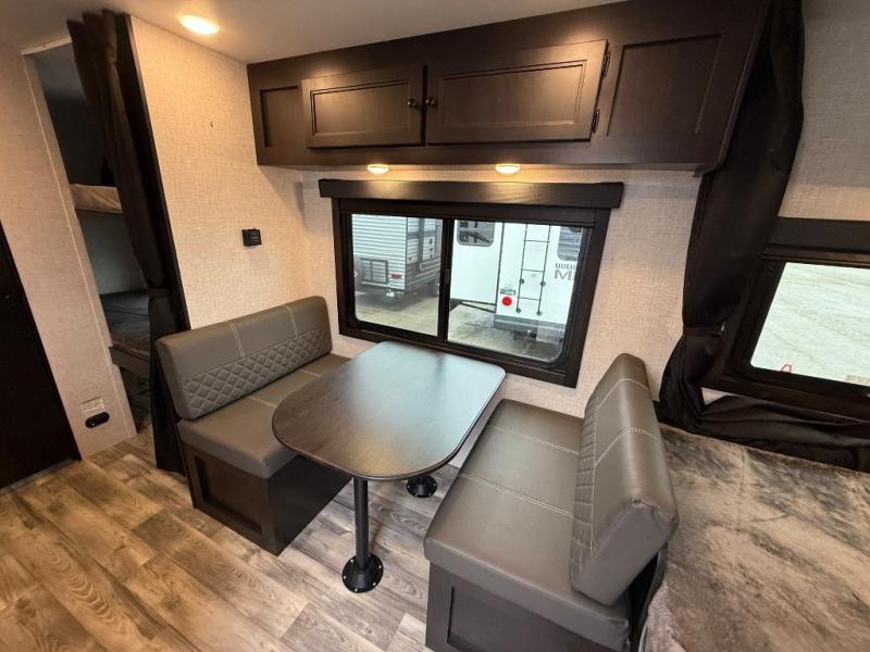 Get to know your state parks a little better with this Super Lite Maxx travel trailer! There is room for four campers to sleep comfortably with the bunk beds, booth dinette and 80" bed, and all of those people can stay clean by using the tub/shower in the full bathroom. And there is storage under the lower bunk to store more gear. Meal prep will be a cinch in this kitchen because it has a two-burner recessed range, convection microwave, residential high-rise faucet, and a deep bowl kitchen sink. If you need to stay inside because of bad weather, you'll find some entertainment from the 32" 12V LED TV, and there are a few overhead cabinets that you can use to store your board games and electronics.