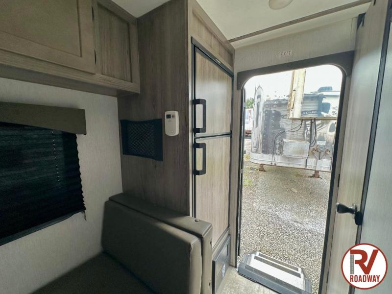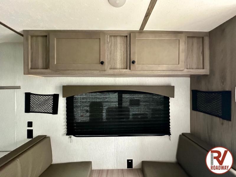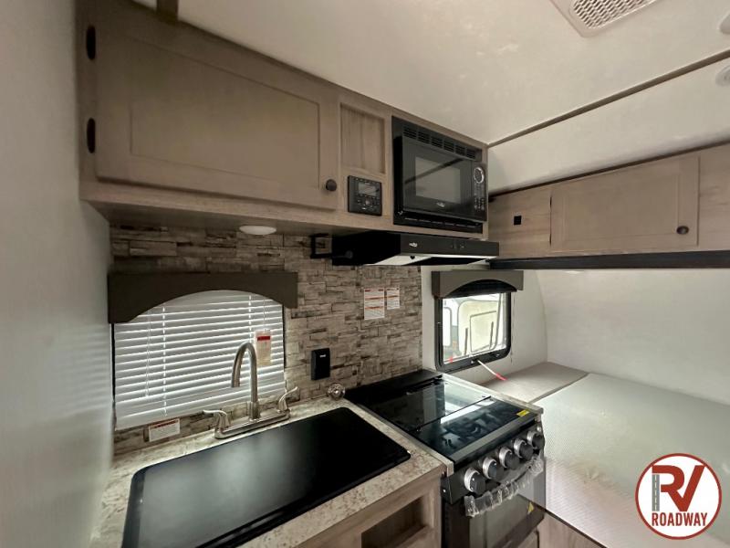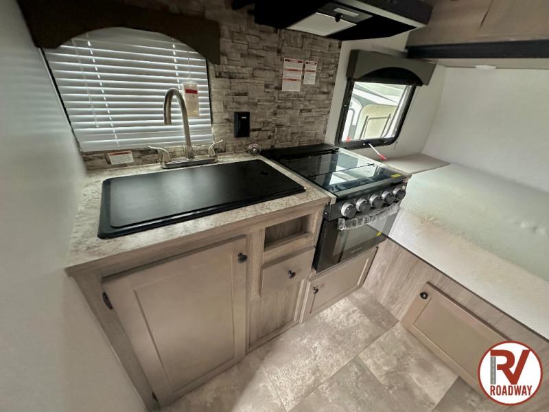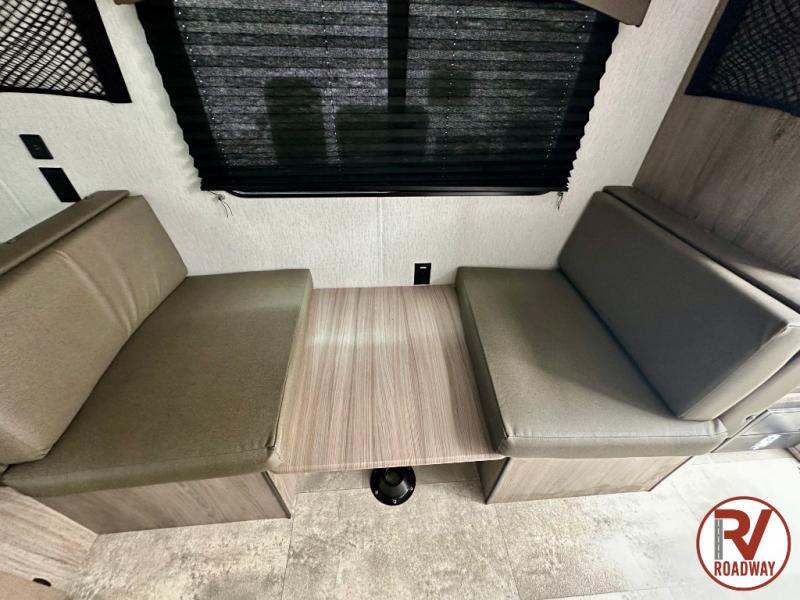 This travel trailer is perfect for couples who want to getaway together! The front bed offers a comfortable place to lay your head at night. When you're not using the booth dinette to enjoy a meal that you prepared with the two burner cooktop or playing a card game, you can transform it into an extra sleeping space. You can start your mornings feeling clean and fresh after showering in the tub with unwanted steam removed with the power roof vent. A sport package option is available with this model, ask dealer for details.