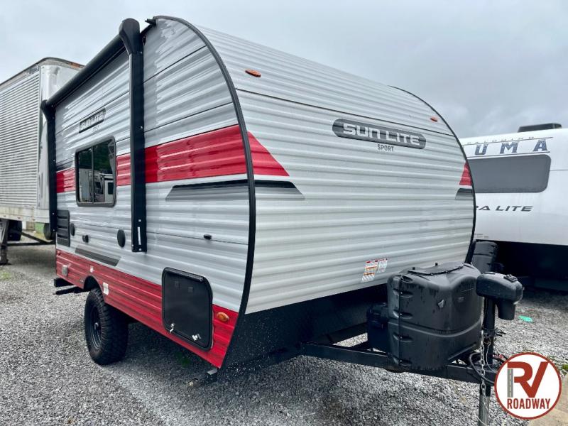 You can trust the build and enjoy your experience with any one of these Sunset Park RV Sun Lite travel trailers! Their aerodynamic profile is not only easy to haul, but also saves on fuel. They are built to withstand years of traveling even though they are lightweight with a diamond plate rock guard, a one piece PVC roof membrane, Dexter Spring-Leaf axles, and tinted safety glass windows. Some comfort standards you are sure to enjoy are the two-burner stove top range with hood, light and fan, plus refrigerator and microwave, and an outside shower to help keep the dirt outdoors where it belongs.