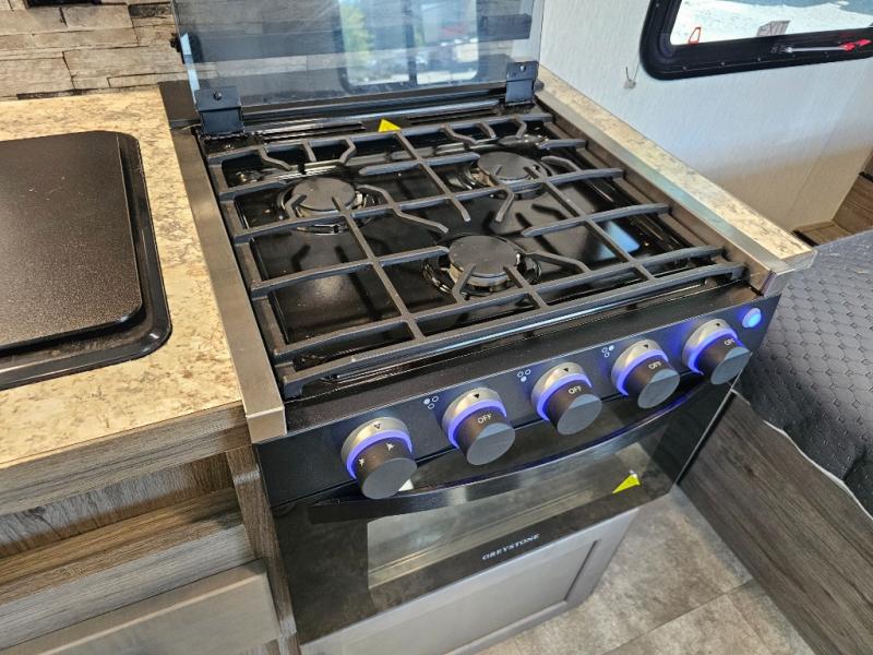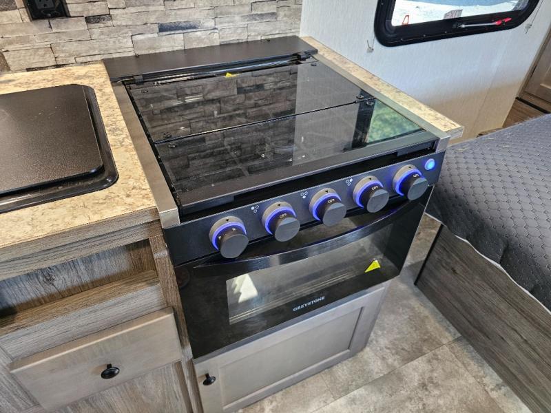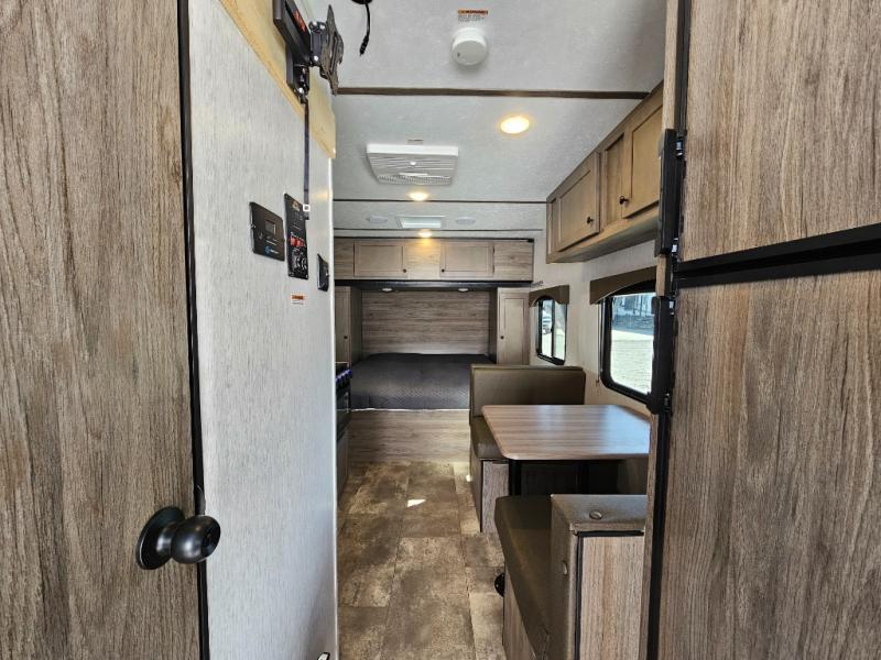 Compact yet versatile, this Sun Lite offers all the essentials: a queen bed, fully equipped kitchen, private bath, and convertible dinette. Its lightweight build and rear-entry design make it perfect for both first-time RVers and seasoned travelers who want simplicity without sacrificing comfort.