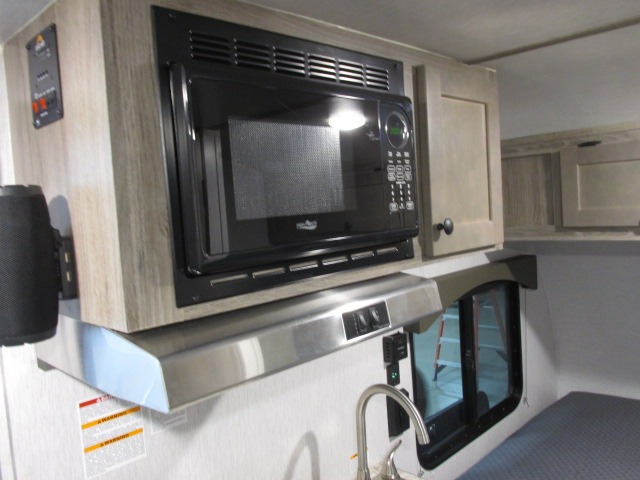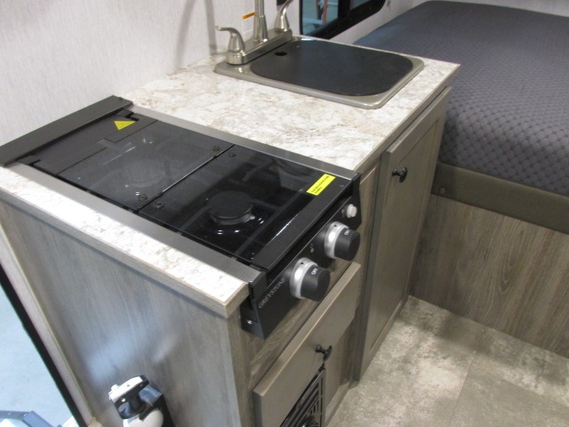 This Sunray travel trailer is the largest and most accommodating because it comes with a wet bath so that you can even take a shower in your trailer! There is a small kitchen on the interior that comes with a two-burner stove top, a refrigerator, and a microwave so that you can cook dinner without having to start a fire, and since it is indoors, you will be able to keep the bugs away while you prepare something delicious to eat. If you need to rinse off some gear, the outside shower will be especially useful, and if you need to charge your devices, use the USB ports. You will also find a Wineguard HDTV antenna on this model. Add the available Classic option for 14" tires instead of the off-road version, color matching rims with Moon Caps, and Retro decor and Diner-Style countertops.
