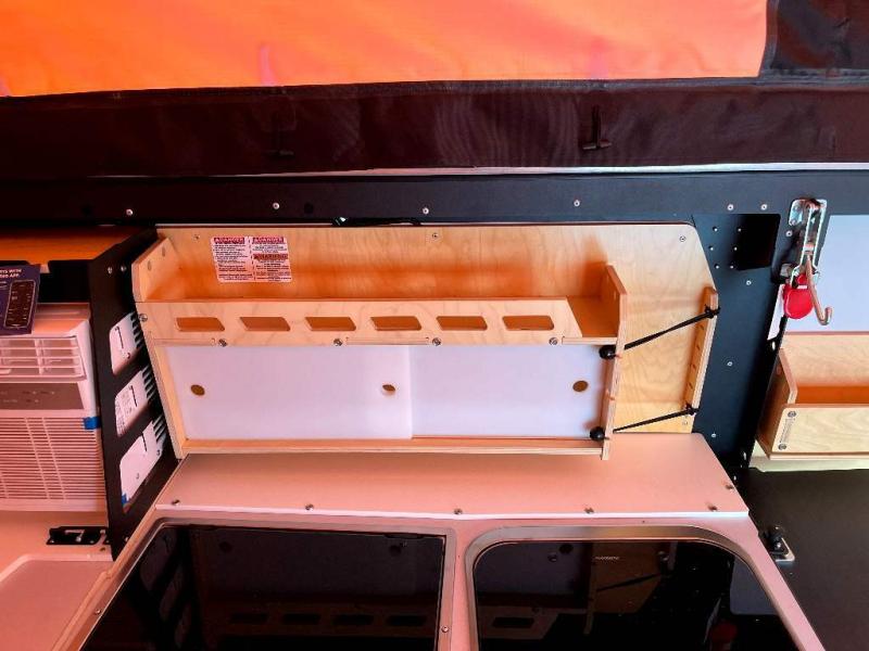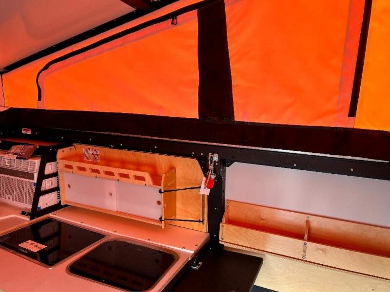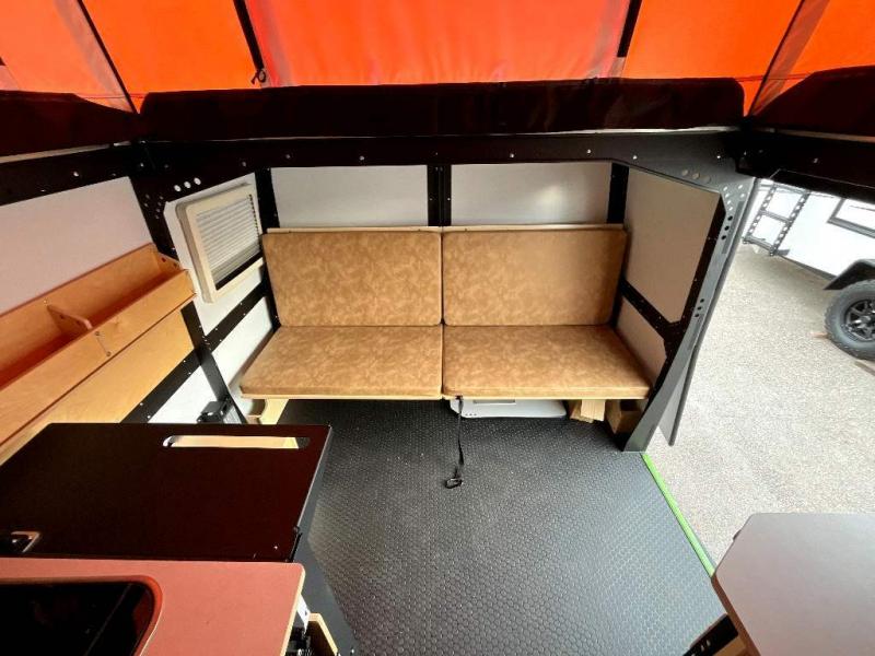 This Mantis travel trailer has go-anywhere durability and thoughtfully designed features! You will find this rugged trailer to be everything that you need it to be. The full galley kitchen has a 16-gallon trash can, a two-burner stove, an open shelving system, a cooler platform, and a sink with hinged lid. The wet bath with shower and cassette toilet is absolutely essential, and the 8,000 BTU air conditioner is a bonus convenience when you find yourself camping out during the hottest part of the summer. This trailer has an excellent sleeping capacity with its full-size bed and folding couch/bunk bed system, but you can make that capacity even greater by adding the optional three-person rooftop tent.