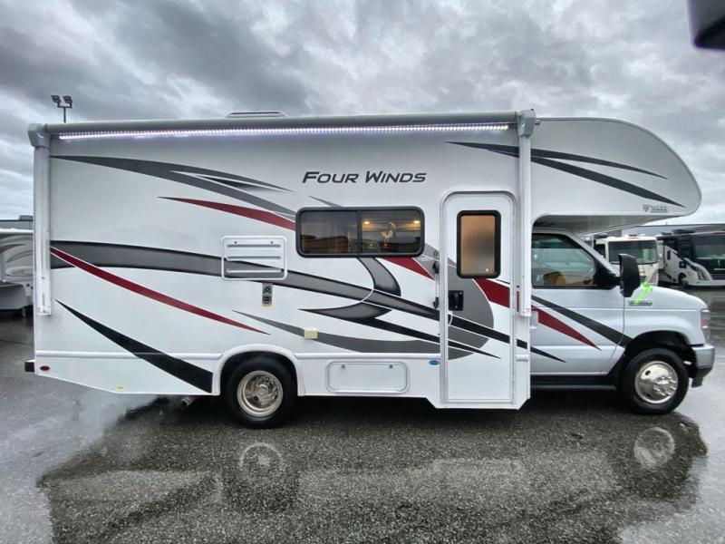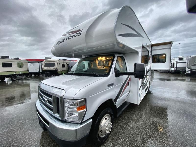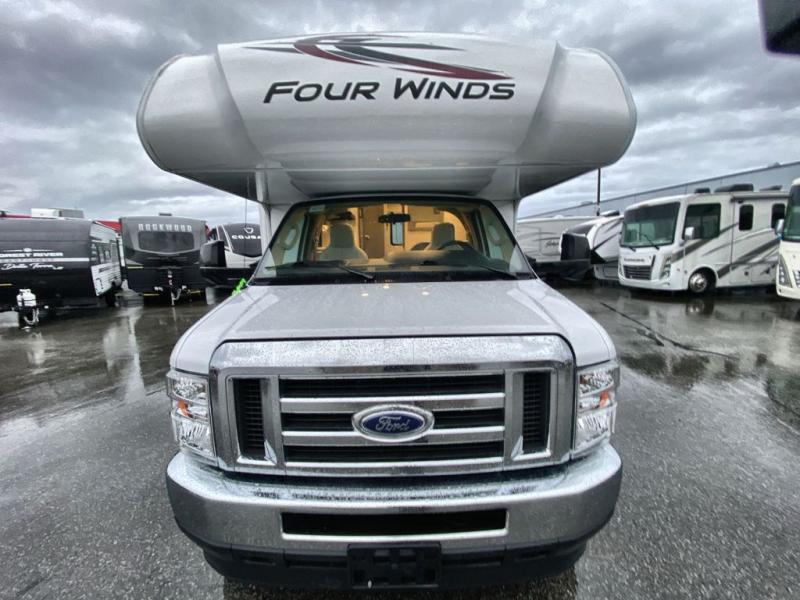 With any Four Winds Class C gas motorhome, you can travel in a trustworthy Ford E-Series chassis with 350HP, or a Chevrolet chassis with 323HP if you choose that option which is available on several models. Each is built with welded sidewall cage construction and a welded tubular aluminum roof, a one-piece fiberglass cap, and includes a slick fiberglass exterior with graphics package for style and years of enjoyment on the open road. Inside, you will enjoy the well-equipped kitchen, the spacious bathroom, the sleeping accommodations and the Winegard ConnecT 2.0 WiFi/4G/TV antenna that allows you to stay connected. With several floorplans to choose from and options to add, you will surely find one that fits your family's needs or your friend's approval. Choose today!