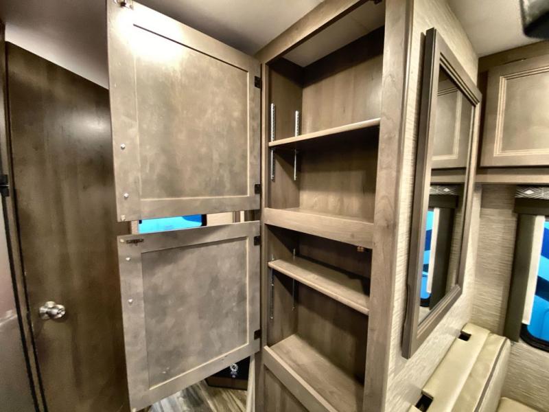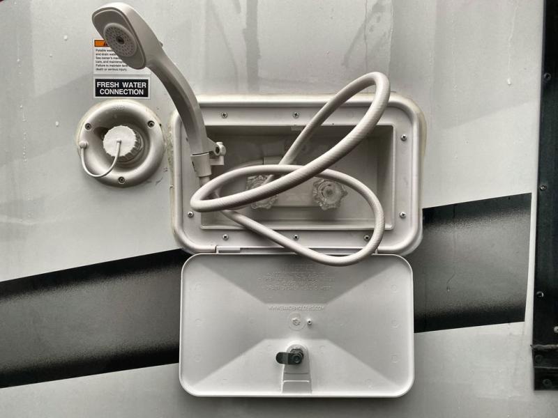Easily head out for fun at a state park, the lake or your friend's ranch. This coach is easy to maneuver on the road or in town thanks to its compact size, yet has so many conveniences, you might not return home. The front cab over bunk is a perfect sleeping space for guests, the 40" TV allows you to watch shows when you want some inside time, and the dream dinette gives you a place to dine and relax. The cook will love all the kitchen amenities at their fingertips, plus the flip-up countertop extension is super handy. The rear corner bedroom offers a queen bed slide for more floor space, a privacy curtain and a closet, plus the full bathroom is a few steps away. You can also choose to add the optional exterior 32" TV for outdoor fun!