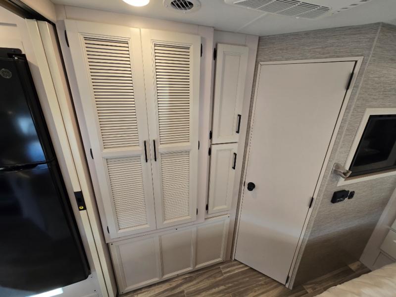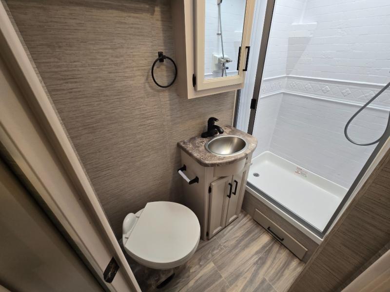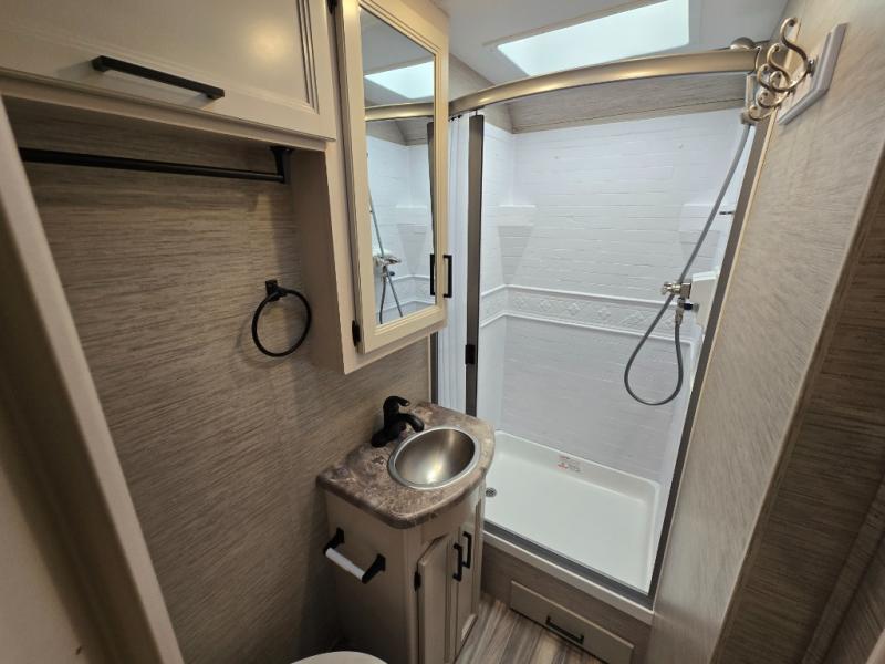 Your family will love traveling in this spacious coach that can sleep six. The little ones will love the drop-down overhead bunk, and you'll have a bedroom with a king bed slide out, a 32" TV, and a large closet to keep your clothes wrinkle-free. The kitchen will be perfect for making at-home meals and there is plenty of counter space to prep fresh fruits and vegetables. Your crew can relax on the Dream Dinette or jack-knife sofa, and there is a 39" TV for movie nights. Or you may just head outdoors to watch the big game on the exterior 32" TV!