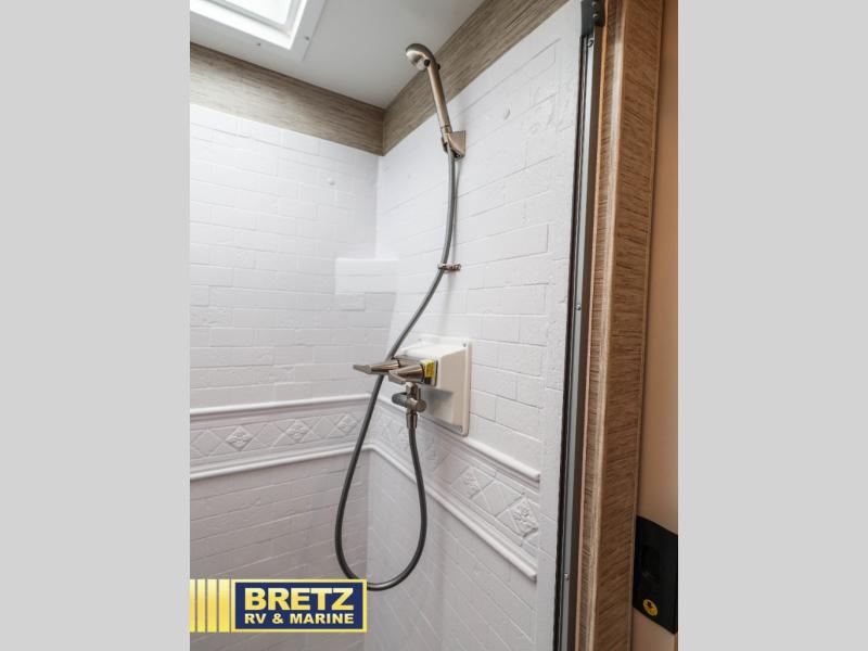 This double slide out coach will feel a little more like home since it features a rear private bedroom with a king bed slide out, your own 32" TV, and a large closet for your things. Your guests can sleep on the drop-down overhead bunk, the Dream Dinette, or the jack-knife sofa, and there is a 39" TV in the living area if they want to watch a movie at night. This A.C.E has a fully-equipped indoor kitchen, plus an exterior kitchen the chef is sure to love, and of course a full bath is on board, making your adventures easier than ever!