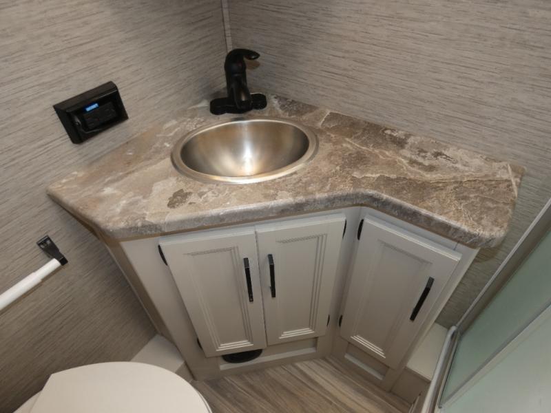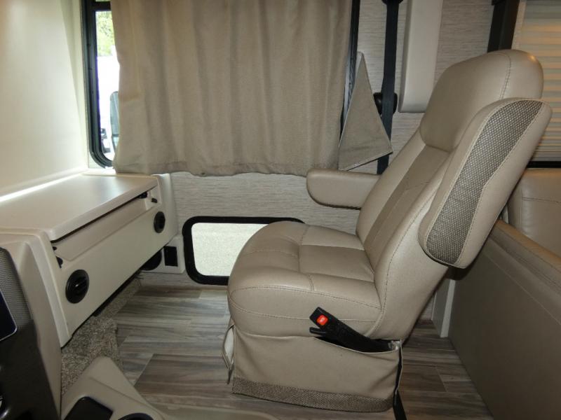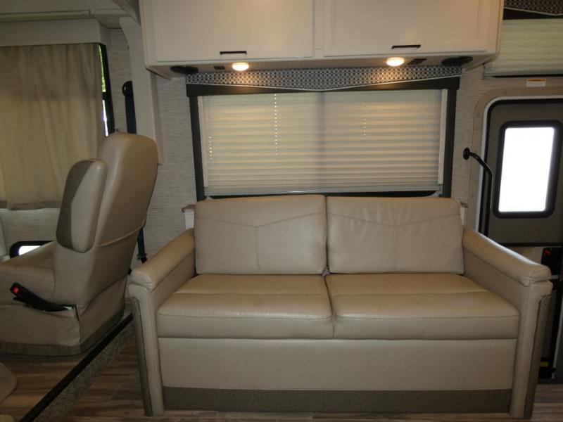 The A.C.E Class A gas motorhome is constructed with a welded tubular steel floor, vacu-bond laminated roof, walls and floor with block foam insulation, and a premium one-piece exterior roof for a coach made to last. You will love the pet-friendly features, like the Bird's Eye window, the Pet-Link multi-purpose tie-down and the Pull-Out Kibble Station with an FDS approved pet bowl liner. Each model includes an Onan RV QG 4,000 gas generator, a Winegard ConnecT Wi-Fi extender +4G, and are pre-wired for solar charging. Some of the other convenient amenities you will find on the A.C.E are frameless windows, a basement pass-through storage, and an exterior LP connection. Head inside to find residential vinyl flooring, pressed laminate countertops, glass tile backsplash in the kitchen, and a designer headboard, bedspread and pillow shams in the bedroom for all-around comfort!