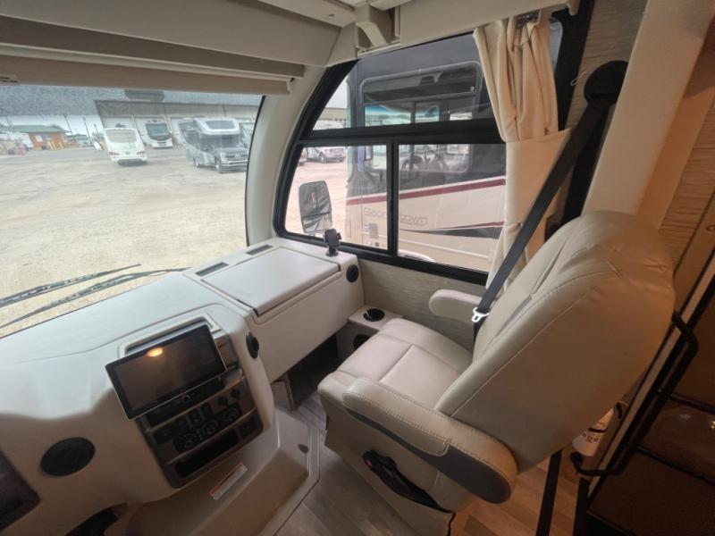 With any Axis RUV Class A gas motorhome by Thor Motor Coach you will enjoy added technology features to make each trip enjoyable, like the RapidCamp+ multiplex lighting and systems control and the Winegard ConnecT 2.0 Wi-Fi/4G/TV antenna. Each model features heated and remote exterior mirrors with integrated side view cameras, reclining and swivel leatherette captain's chairs, and a dash workstation with 110-volt and 12-volt outlets to get some work done if needed. Relaxing after a long day of traveling will be easy with the leatherette furniture, the Euro-style cabinet doors, and 82" interior ceiling height. The HD-MAX exterior with graphics package and black frameless windows provide a sleek look you are sure to love, and don't overlook the power awning with integrated LED lighting and lighted rotocast storage compartments for all your gear.