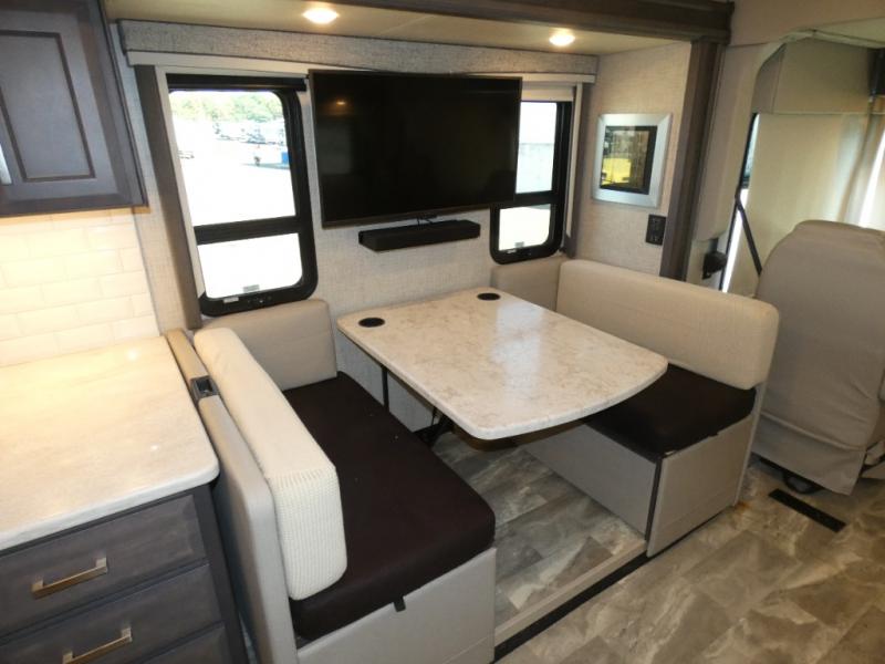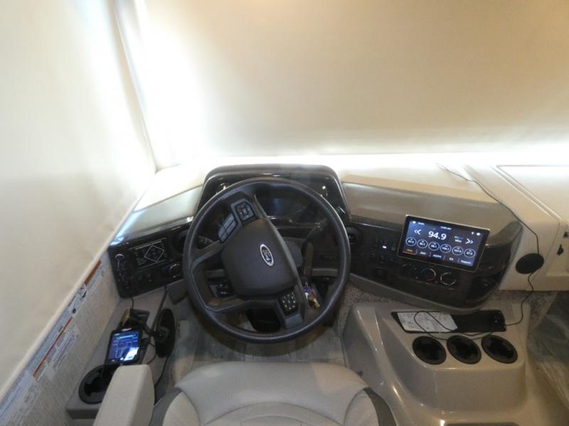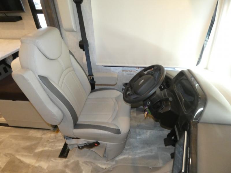 Hop on board the Challenger Class A gas motorhome by Thor Motor Coach for an adventure of a lifetime. The modern dash features a 10.1" touchscreen dash radio with Bluetooth and Sirius/XM radio, plus there are reclining/swivel leatherette captain's chairs for your comfort. Setting up your coach will be a breeze with the automatic leveling jacks with touchpad controls, and each model includes an Onan RV QG 5500 gas generator, dual roof A/C's, and many more amenities for hassle-free camping. The interior of the Challenger will have you feeling at home in a heartbeat. Residential vinyl flooring, solid surface countertops, and satin-finish cabinetry are just a few comforts you will enjoy. Each model also includes a Winegard ConnecT WiFi extender +4G to keep you connected to the outside world as you travel, and an entertainment package that will never leave you bored!