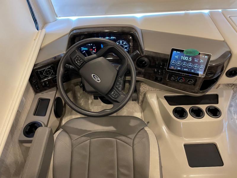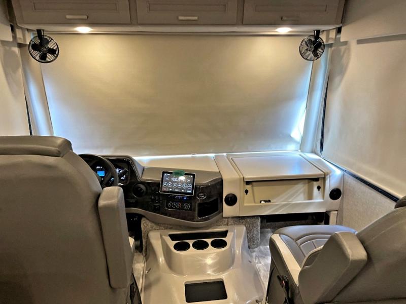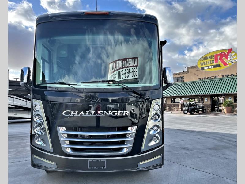 Hop on board the Challenger Class A gas motorhome by Thor Motor Coach for an adventure of a lifetime. The modern dash features a 10.1" touchscreen dash radio with Bluetooth and Sirius/XM radio, plus there are reclining/swivel leatherette captain's chairs for your comfort. Setting up your coach will be a breeze with the automatic leveling jacks with touchpad controls, and each model includes an Onan RV QG 5500 gas generator, dual roof A/C's, and many more amenities for hassle-free camping. The interior of the Challenger will have you feeling at home in a heartbeat. Residential vinyl flooring, solid surface countertops, and satin-finish cabinetry are just a few comforts you will enjoy. Each model also includes a Winegard ConnecT WiFi extender +4G to keep you connected to the outside world as you travel, and an entertainment package that will never leave you bored!