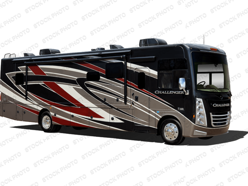Hop on board the Challenger Class A gas motorhome by Thor Motor Coach for an adventure of a lifetime. The modern dash features a 10.1" touchscreen dash radio with Bluetooth and Sirius/XM radio, plus there are reclining/swivel leatherette captain's chairs for your comfort. Setting up your coach will be a breeze with the automatic leveling jacks with touchpad controls, and each model includes an Onan RV QG 5500 gas generator, dual roof A/C's, and many more amenities for hassle-free camping. The interior of the Challenger will have you feeling at home in a heartbeat. Residential vinyl flooring, solid surface countertops, and satin-finish cabinetry are just a few comforts you will enjoy. Each model also includes a Winegard ConnecT WiFi extender +4G to keep you connected to the outside world as you travel, and an entertainment package that will never leave you bored!