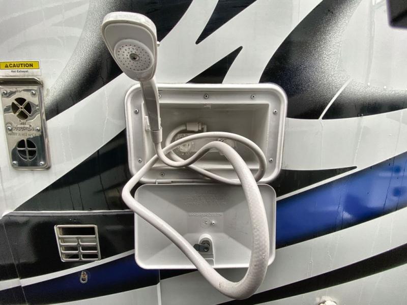If you wish to escape the hustle and bustle of everyday life with your favorite people then check out this motorhome! Everyone will have a comfortable place to sleep between the rear corner 54" x 80" queen bed, the 52" x 96" bunk over cab with a 40" TV on a swivel for entertainment at night, and even the 76" Dream Dinette can transform into an extra sleeping space. Store all of your essentials in the closet just outside the rear corner bathroom which has a 24" x 36" shower and keep your perishables fresh in the refrigerator. The flip-up countertop extension makes it easier to prepare your home cooked meals, and you can add an optional exterior 32" TV to watch the big game outdoors!