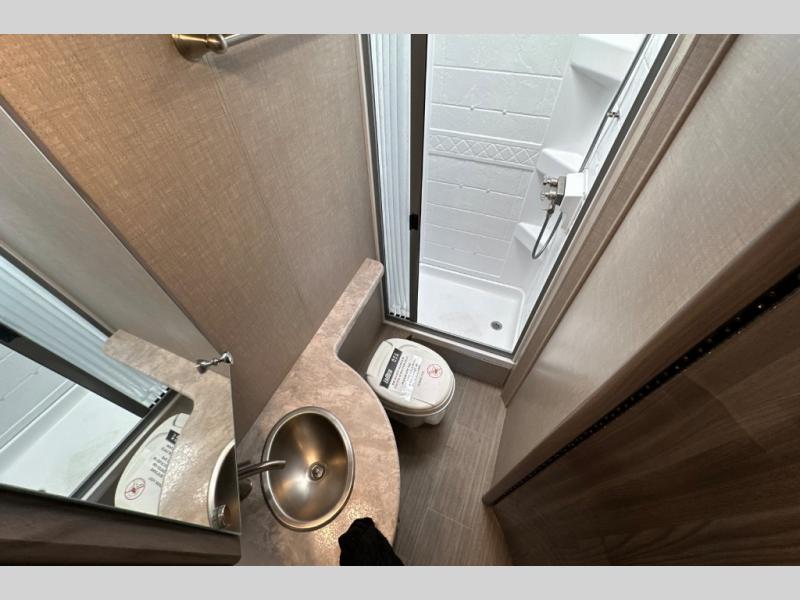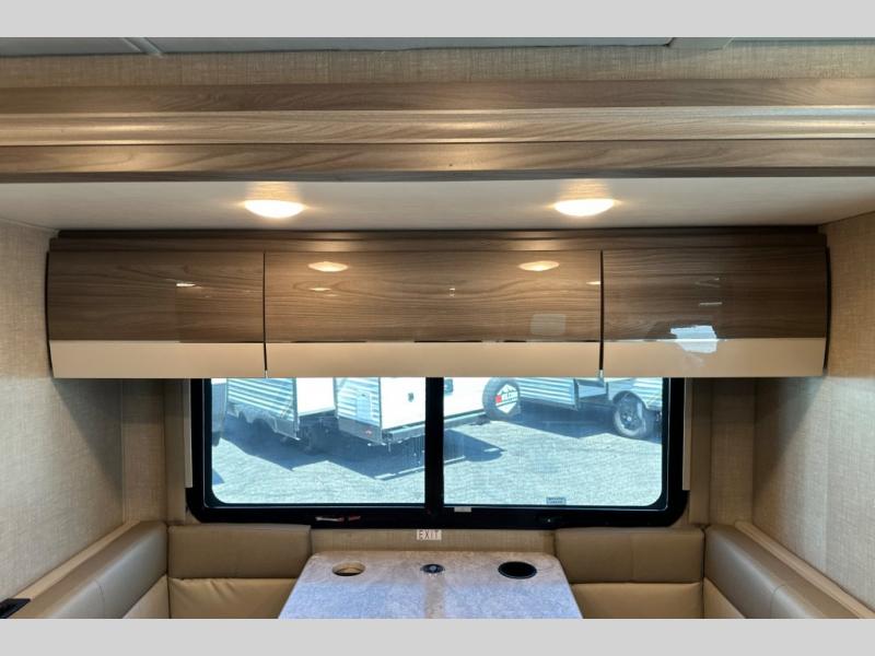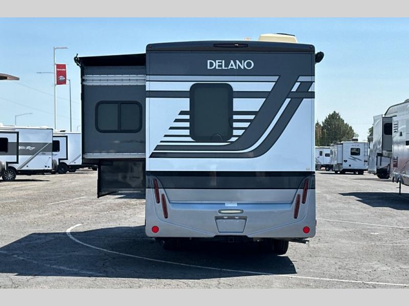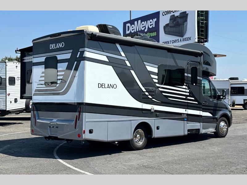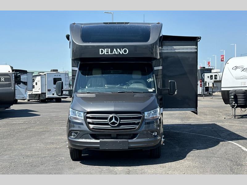 Luxury comes standard in the Delano Sprinter Class C diesel motorhomes by Thor Motor Coach. You will find it so easy to maneuver the road with the Mercedes-Benz Safety package that includes features such as active braking assist and distance regulator distronic plus that will help keep a safe distance from vehicles in front of you. The frameless windows and the full-body paint package with gel coated sidewalls is sure to be eye-catching, plus there is invisible front paint protection for added defense against the elements. Each model includes the Rapid Camp+ multiplex wiring control system that will make set-up easier than ever, a Winegard ConnecT 2.0 WiFi/4G/TV antenna to keep you connected to the outside world, and a whole coach water filtration system for fresh H2O day or night. The Delano Sprinter also includes many interior comforts, like the easy-to-clean residential vinyl flooring, the high-gloss Euro-style cabinetry, and the Leatherette furniture!
