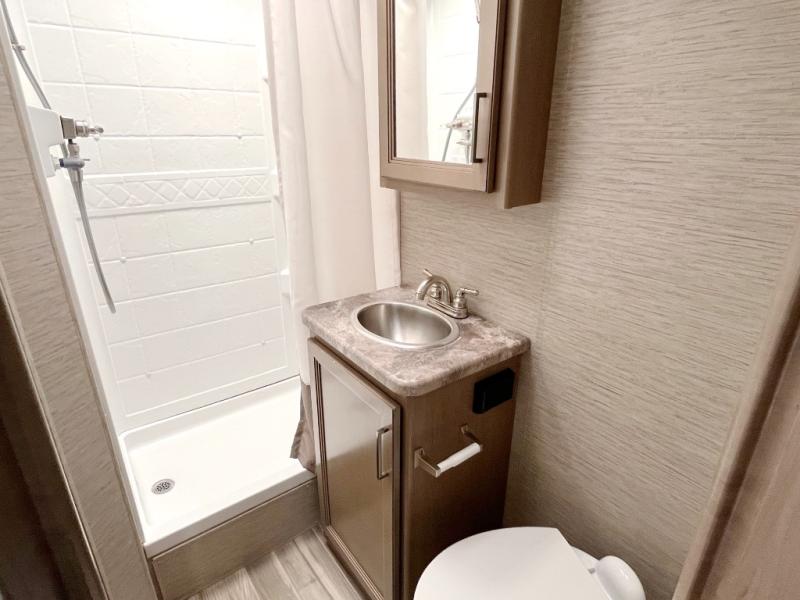 With any Four Winds Class C gas motorhome, you can travel in a trustworthy Ford E-Series chassis with 350HP, or a Chevrolet chassis with 323HP if you choose that option which is available on several models. Each is built with welded sidewall cage construction and a welded tubular aluminum roof, a one-piece fiberglass cap, and includes a slick fiberglass exterior with graphics package for style and years of enjoyment on the open road. Inside, you will enjoy the well-equipped kitchen, the spacious bathroom, the sleeping accommodations and the Winegard ConnecT 2.0 WiFi/4G/TV antenna that allows you to stay connected. With several floorplans to choose from and options to add, you will surely find one that fits your family's needs or your friend's approval. Choose today!