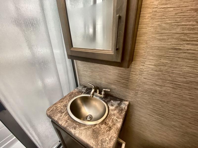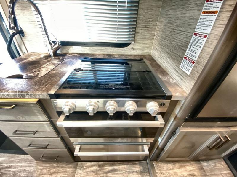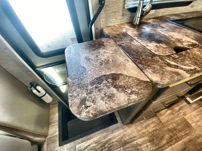 Get ready to travel for long periods of time in this coach that offers sleeping space for five when you utilize the rear corner queen bed, the cab over bunk and the dream dinette. You and your friends will enjoy staying anywhere with the views out of the windows, the full bathroom only a few steps away and the kitchen amenities to feed everyone plus some. The chef will love the galley kitchen and being able to watch the 40" TV with swivel while cooking. You might even like to add an optional exterior 32" TV to enjoy while relaxing outside under the power awning with integrated LED lighting to enjoy at night.