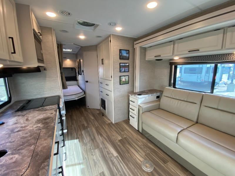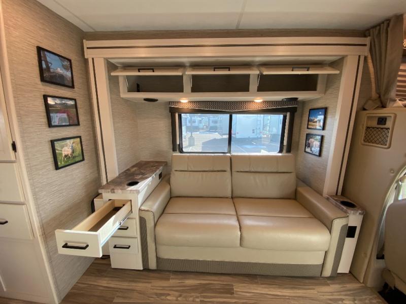 With any Four Winds Class C gas motorhome, you can travel in a trustworthy Ford E-Series chassis with 350HP, or a Chevrolet chassis with 323HP if you choose that option which is available on several models. Each is built with welded sidewall cage construction and a welded tubular aluminum roof, a one-piece fiberglass cap, and includes a slick fiberglass exterior with graphics package for style and years of enjoyment on the open road. Inside, you will enjoy the well-equipped kitchen, the spacious bathroom, the sleeping accommodations and the Winegard ConnecT 2.0 WiFi/4G/TV antenna that allows you to stay connected. With several floorplans to choose from and options to add, you will surely find one that fits your family's needs or your friend's approval. Choose today!