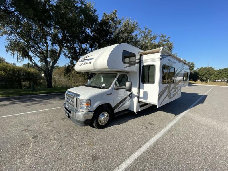 With any Four Winds Class C gas motorhome, you can travel in a trustworthy Ford E-Series chassis with 350HP. Each is built with welded sidewall cage construction and a welded tubular aluminum roof, a one-piece fiberglass cap, and includes a slick fiberglass exterior with graphics package for style and years of enjoyment on the open road. Inside, you will enjoy the well-equipped kitchen, the spacious bathroom, the sleeping accommodations and the Winegard ConnecT 2.0 WiFi/4G/TV antenna that allows you to stay connected. With several floorplans to choose from and options to add, you will surely find one that fits your family's needs or your friend's approval. Choose today!