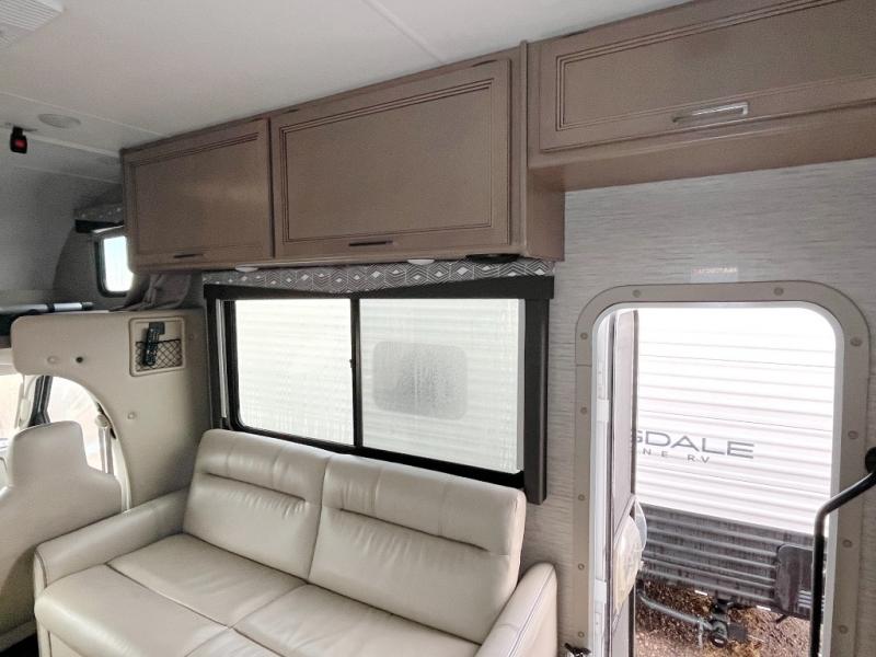 With any Four Winds Class C gas motorhome, you can travel in a trustworthy Ford E-Series chassis with 350HP, or a Chevrolet chassis with 323HP if you choose that option which is available on several models. Each is built with welded sidewall cage construction and a welded tubular aluminum roof, a one-piece fiberglass cap, and includes a slick fiberglass exterior with graphics package for style and years of enjoyment on the open road. Inside, you will enjoy the well-equipped kitchen, the spacious bathroom, the sleeping accommodations and the Winegard ConnecT 2.0 WiFi/4G/TV antenna that allows you to stay connected. With several floorplans to choose from and options to add, you will surely find one that fits your family's needs or your friend's approval. Choose today!