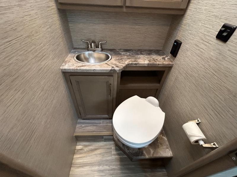 Whether you are couple or a family, this coach offers so many comforts you might never go back home! There is a rear bedroom offering a walk-around queen bed with storage on each side, and a split bathroom allowing two people to get ready at once. You'll love the living room furniture that can double as sleeping space for overnight guests, along with the cab-over bunk. There are full kitchen amenities such as a gas cooktop and microwave, plus the double door refrigerator is next to the mid-coach entry allowing you to grab a beverage on your way out to relax under the power awning with integrated LED lighting. There is more to enjoy like the 40" LED TV with swivel for the perfect view of the game, the dream dinette for dining and working, the sofa to relax on, and the cab over bunk to take a nap.