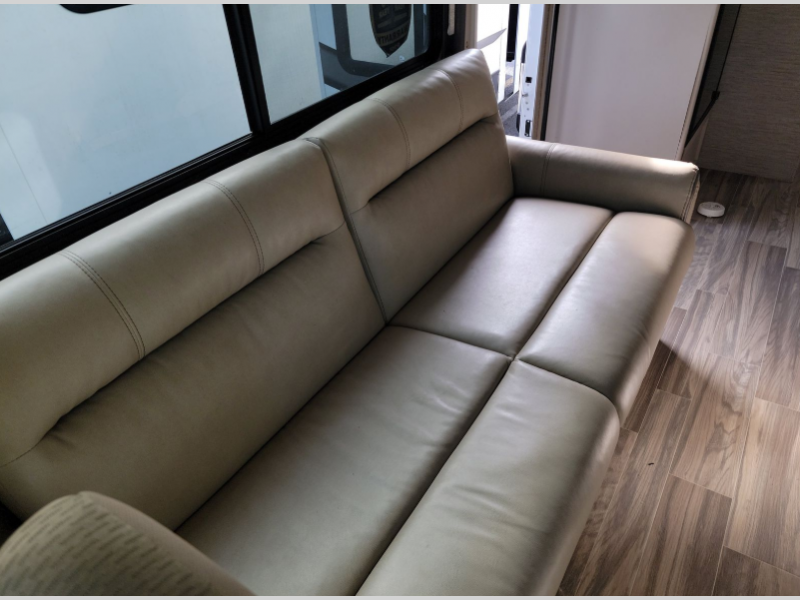 Whether you are couple or a family, this coach offers so many comforts you might never go back home! There is a rear bedroom offering a walk-around queen bed with storage on each side, and a split bathroom allowing two people to get ready at once. You'll love the living room furniture that can double as sleeping space for overnight guests, along with the cab-over bunk. There are full kitchen amenities such as a gas cooktop and microwave, plus the double door refrigerator is next to the mid-coach entry allowing you to grab a beverage on your way out to relax under the power awning with integrated LED lighting. There is more to enjoy like the 40" LED TV with swivel for the perfect view of the game, the dream dinette for dining and working, the sofa to relax on, and the cab over bunk to take a nap.