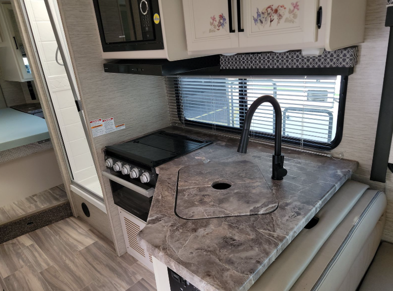 With any Four Winds Class C gas motorhome, you can travel in a trustworthy Ford E-Series chassis with 350HP, or a Chevrolet chassis with 323HP if you choose that option which is available on several models. Each is built with welded sidewall cage construction and a welded tubular aluminum roof, a one-piece fiberglass cap, and includes a slick fiberglass exterior with graphics package for style and years of enjoyment on the open road. Inside, you will enjoy the well-equipped kitchen, the spacious bathroom, the sleeping accommodations and the Winegard ConnecT 2.0 WiFi/4G/TV antenna that allows you to stay connected. With several floorplans to choose from and options to add, you will surely find one that fits your family's needs or your friend's approval. Choose today!