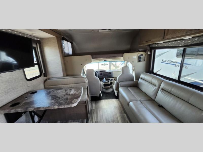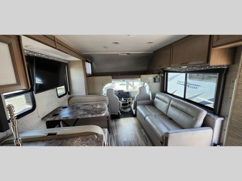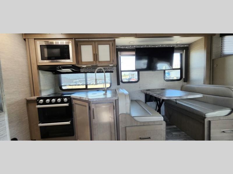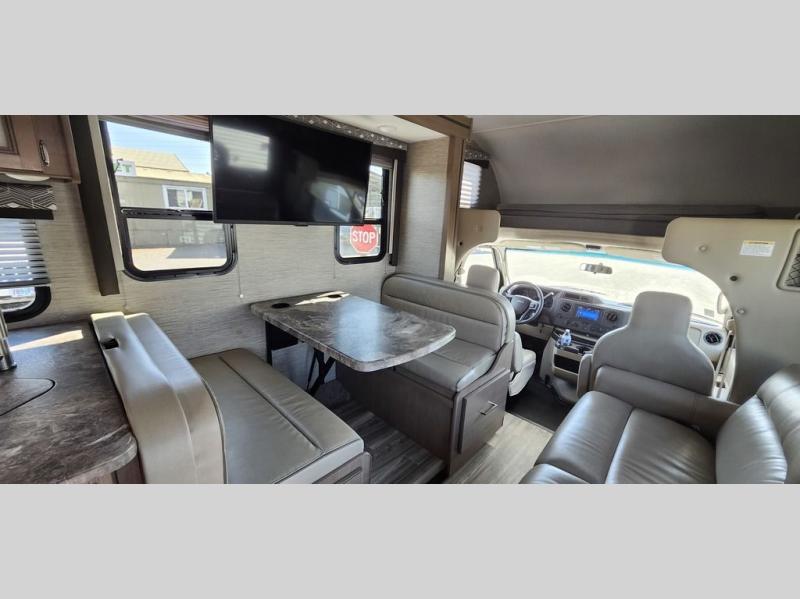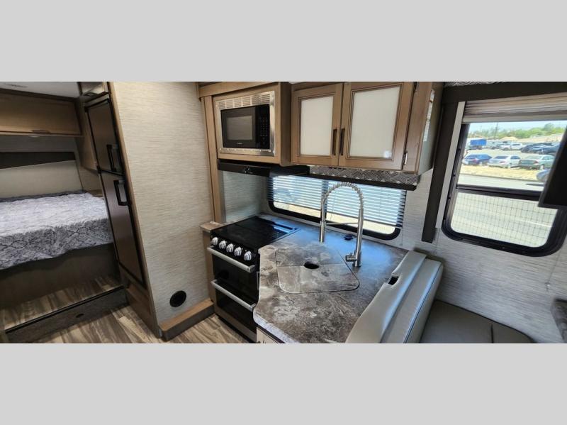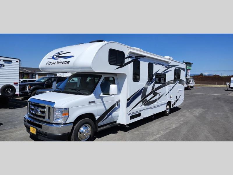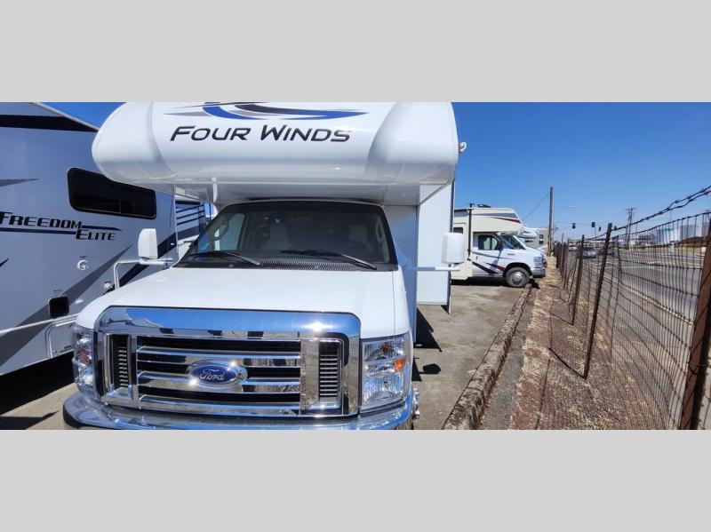 With any Four Winds Class C gas motorhome, you can travel in a trustworthy Ford E-Series chassis with 350HP. Each is built with welded sidewall cage construction and a welded tubular aluminum roof, a one-piece fiberglass cap, and includes a slick fiberglass exterior with graphics package for style and years of enjoyment on the open road. Inside, you will enjoy the well-equipped kitchen, the spacious bathroom, the sleeping accommodations and the Winegard ConnecT 2.0 WiFi/4G/TV antenna that allows you to stay connected. With several floorplans to choose from and options to add, you will surely find one that fits your family's needs or your friend's approval. Choose today!
