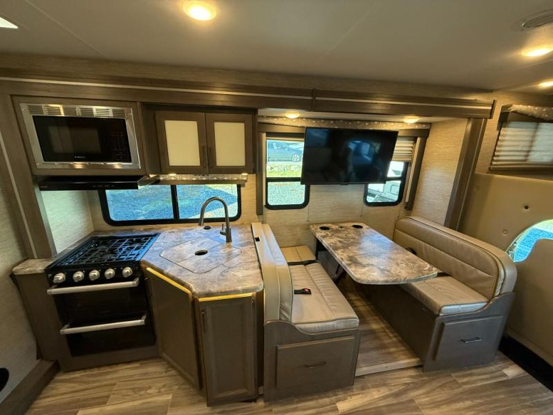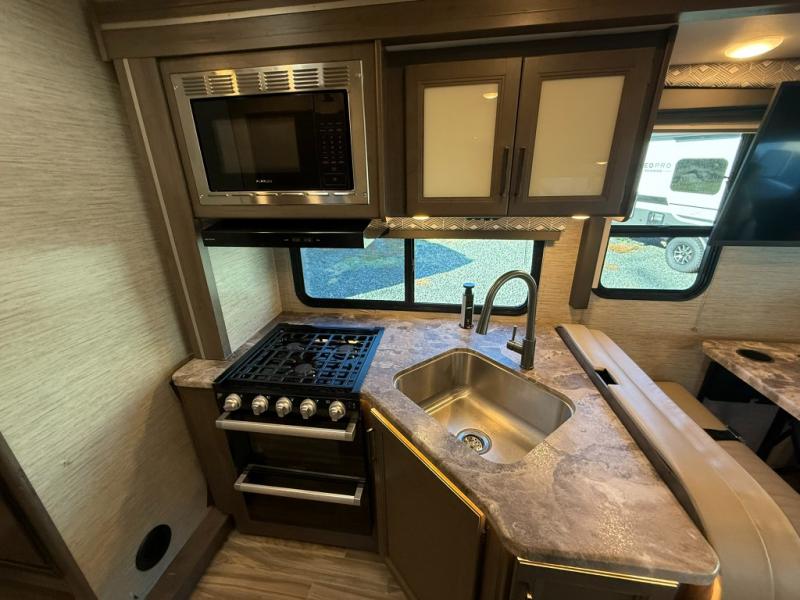 With any Four Winds Class C gas motorhome, you can travel in a trustworthy Ford E-Series chassis with 350HP. Each is built with welded sidewall cage construction and a welded tubular aluminum roof, a one-piece fiberglass cap, and includes a slick fiberglass exterior with graphics package for style and years of enjoyment on the open road. Inside, you will enjoy the well-equipped kitchen, the spacious bathroom, the sleeping accommodations and the Winegard ConnecT 2.0 WiFi/4G/TV antenna that allows you to stay connected. With several floorplans to choose from and options to add, you will surely find one that fits your family's needs or your friend's approval. Choose today!
