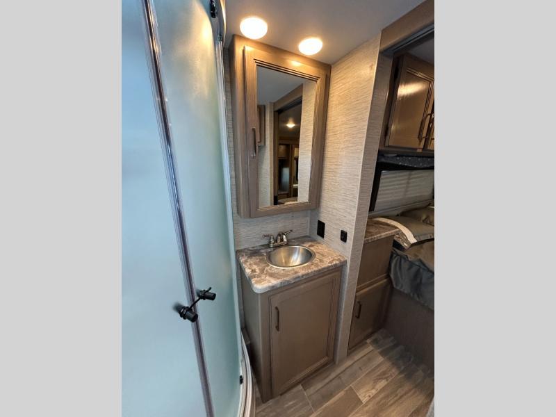 With any Four Winds Class C gas motorhome, you can travel in a trustworthy Ford E-Series chassis with 350HP. Each is built with welded sidewall cage construction and a welded tubular aluminum roof, a one-piece fiberglass cap, and includes a slick fiberglass exterior with graphics package for style and years of enjoyment on the open road. Inside, you will enjoy the well-equipped kitchen, the spacious bathroom, the sleeping accommodations and the Winegard ConnecT 2.0 WiFi/4G/TV antenna that allows you to stay connected. With several floorplans to choose from and options to add, you will surely find one that fits your family's needs or your friend's approval. Choose today!