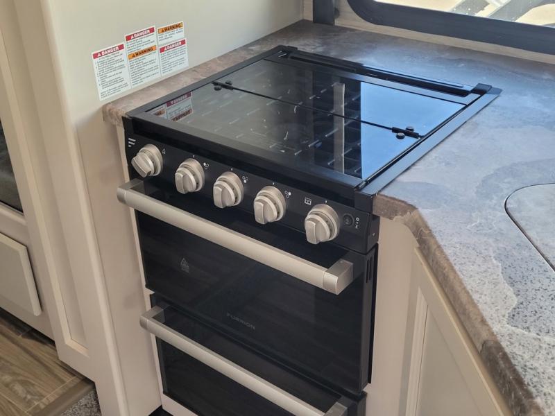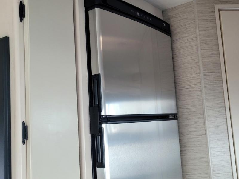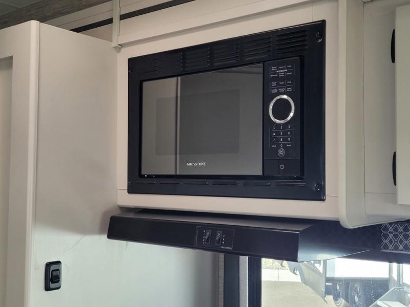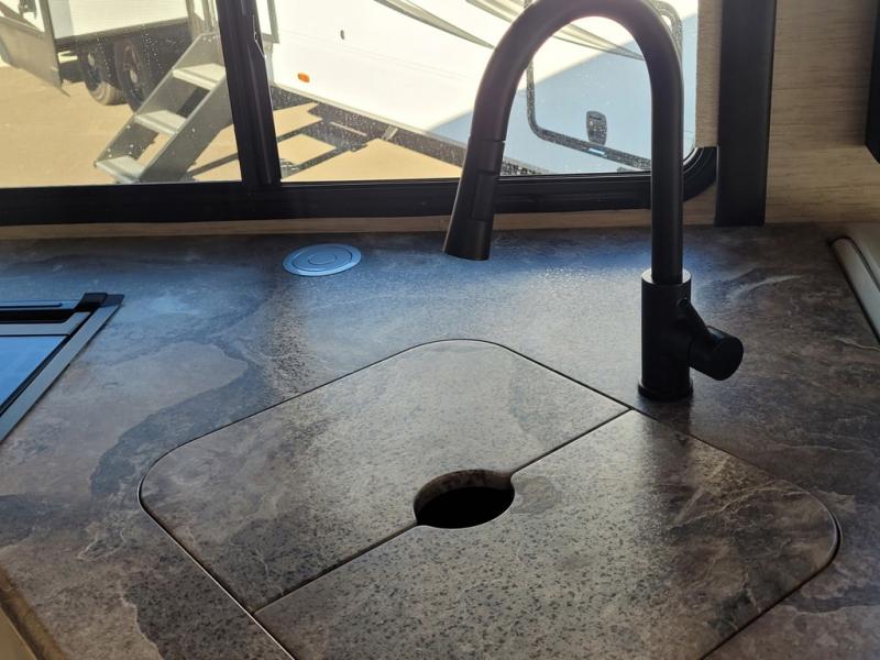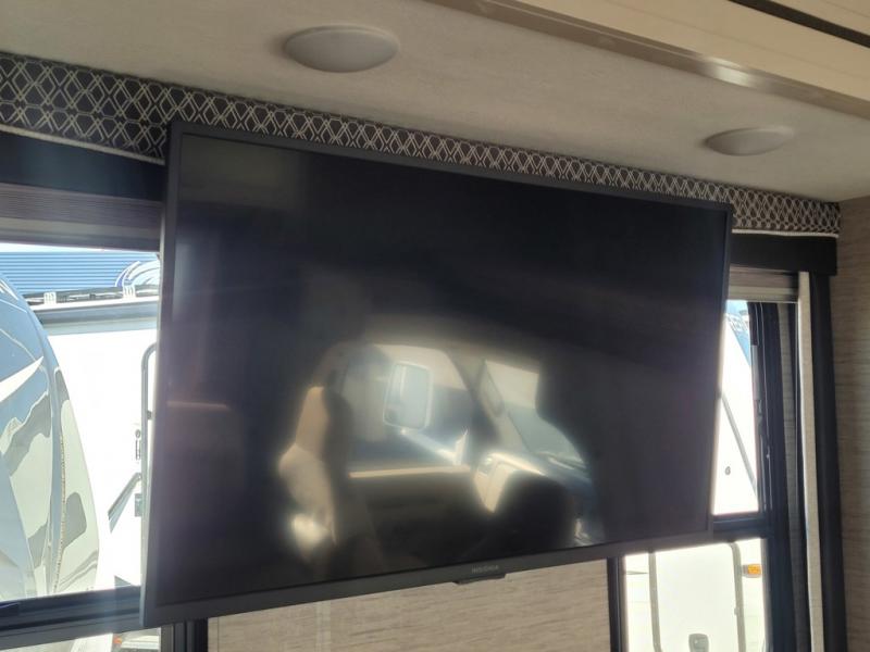 Planning a family vacation, a friend get-away or enjoy traveling with your partner? This coach offers a spacious interior thanks to the full-wall slide that stretches from behind the cab seats to the rear private bedroom. You can rest easy in your own queen bed with access to the double entry bathroom, your kids or guests will enjoy the bunk beds and cab over bunk to sleep on, plus the dream dinette and 68" jack-knife sofa offer even more sleeping space. And the kitchen amenities will impress anyone as they enter the mid-coach entrance. Everyone can watch the 40" TV over the cab that includes a swivel for the perfect view while visiting inside, or head outside to relax under the power awning with integrated LED lighting.