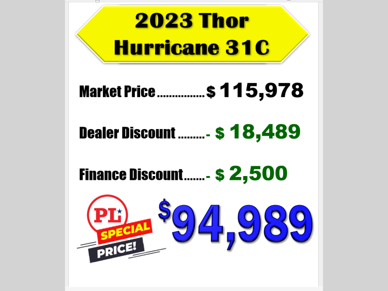 Used 2023 Thor Motor Coach Hurricane 31C Motor Home Class A