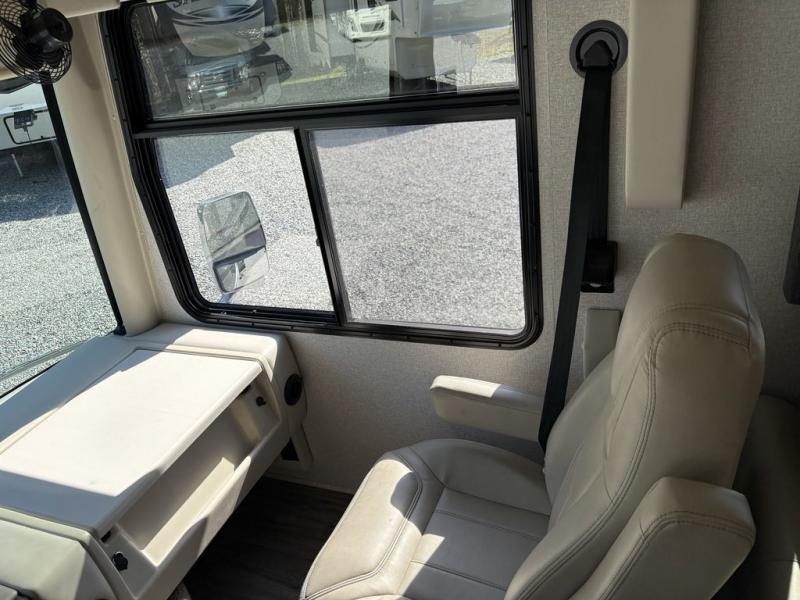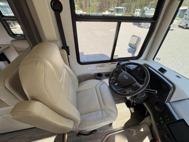 With any Miramar Class A gas motorhome by Thor Motor Coach you will find a durable welded tubular aluminum roof and sidewall cage construction, rotocast storage compartments, and frameless windows for a more sleek look. The 100-watt solar charging system with a power controller will allow you to do some off-grid camping, and you'll have an Onan RV QG 5500 gas generator on board for all your power needs. Each model includes the Rapid Camp+ multiplex wiring control system for quick and easy set up, and the Winegard ConnecT WiFi extender +4G will be perfect if you need to telecommute. Inside you'll find residential vinyl flooring, leatherette furniture, plus satin finish cabinetry with solid wood flat panel cabinet doors and nickel finish hardware for a truly luxurious coach!