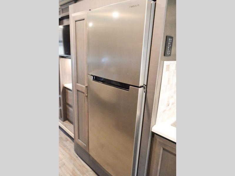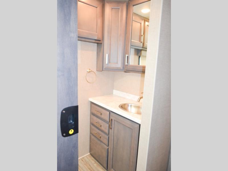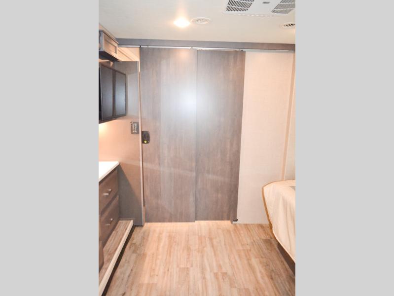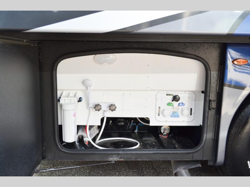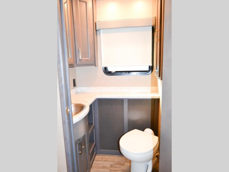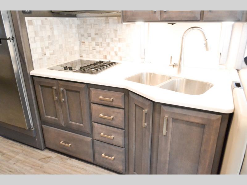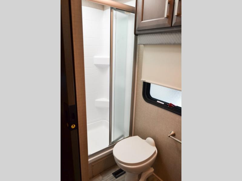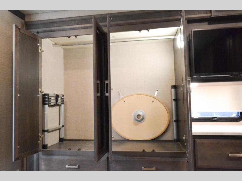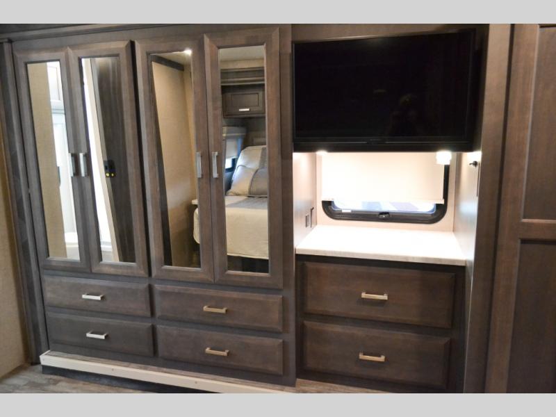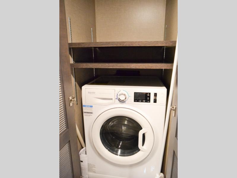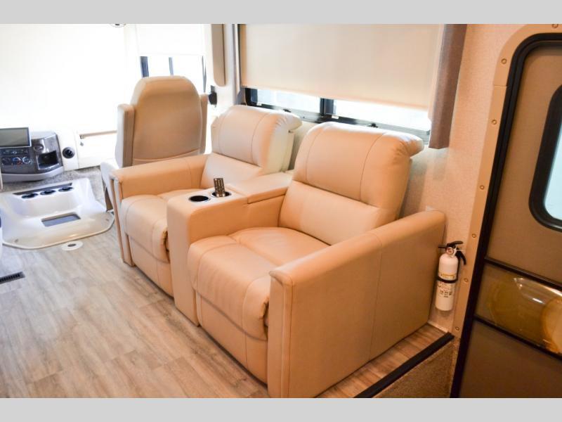 Head out on your greatest of adventures with this motorhome! You will feel right at home in the master suite with the Tilt-A-View inclining 72" x 76" king bed slide across from a closet with a dresser and a 32" TV, plus you have access to the full rear bathroom which has a 30" x 36" shower to get squeaky clean each morning. If you add the optional stackable washer and dryer to the prepped area then you can extend your trips with clean clothes. The two burner high output gas range top with a single induction cooktop will be easy to cook your favorite meals on and the 72" Dream Dinette offers a comfortable place to enjoy them. The drop-down 52" x 74" bunk over cab can not only be used for sleeping, but also for storage space. You also have a 68" jackknife sofa to read a book on during the day and transform into an extra sleeping space at night or you can switch it out for the optional theater seating!