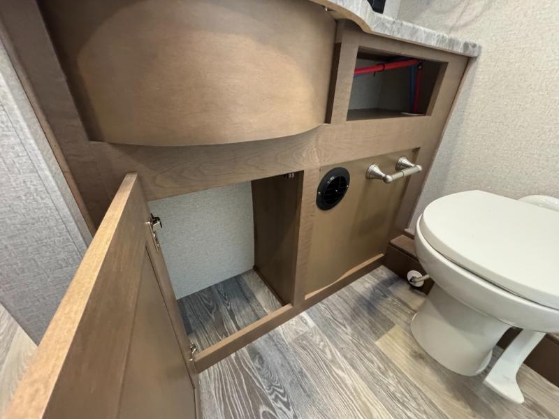 With any Outlaw Class A gas motorhome toy hauler you will appreciate the garage Drop-Down Zero-G ramp door with a snap-in patio system and a power awning. The remote fuel filling station with an auxiliary fuel tank, pump and a nozzle will allow you to keep your toys ready for adventure, and there is a Pet-Link multi-purpose tie-down if you've brought your furry friends along. Each model is constructed with Vacu-Bond laminated roof, walls and floor with block foam insulation, a full-body paint package with gel coated sidewalls, and a premium one-piece TPO roof for durability. The interior will have you feeling at home with leatherette furniture, solid surface kitchen countertops, satin finish cabinetry, plus a glass shower door for added luxury. All of your power needs will be met with an Onan RV QG 5500 gas generator, four auxiliary house batteries, plus a 100-watt solar charging system with a power controller. Choose an Outlaw Class A gas toy hauler coach and you'll never look back!